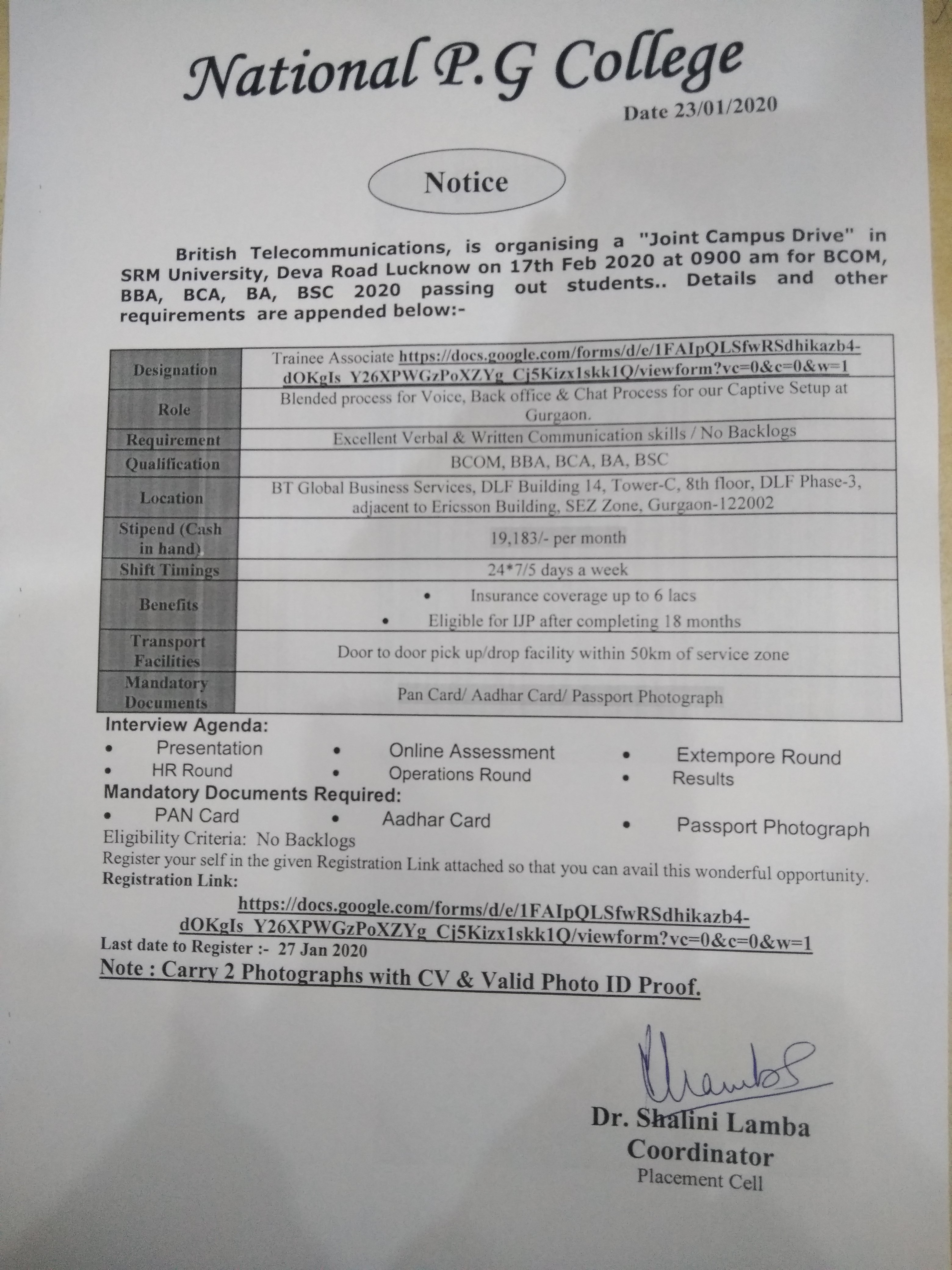 23 January, 2020