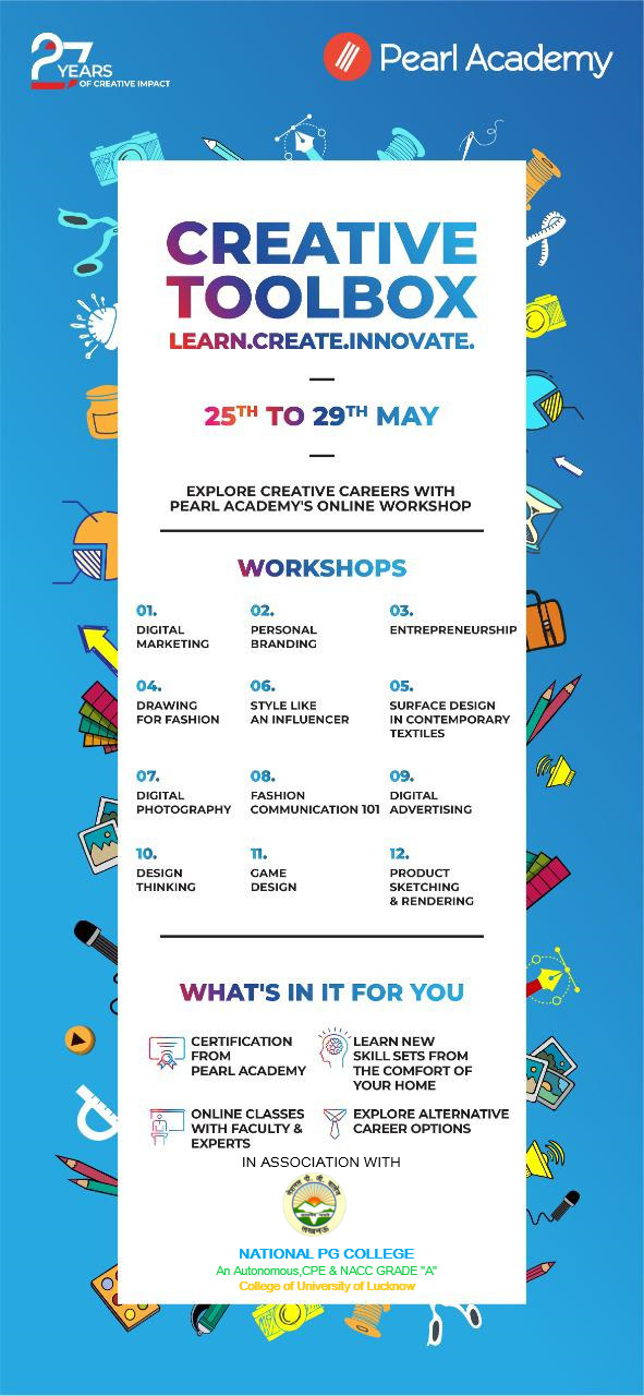 Come and explore Creative Career options with Pearl Academy’s summer workshops in association with *Placement Cell, National PG College,An Autonomous College of Lucknow University* Register today at: https://bit.ly/PearlAcademy_CreativeToolbox