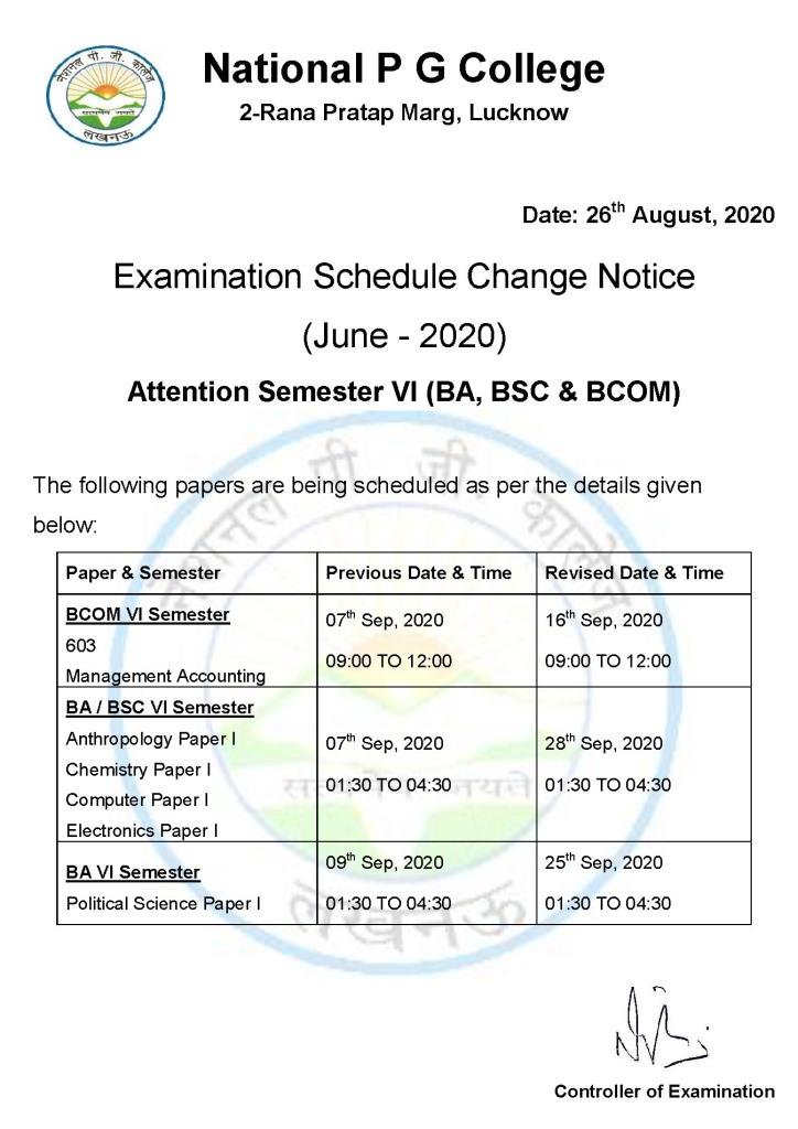 Examination Schedule Change Notice (June-2020) : B.A., B.Com., & B.Sc. Semester-VI