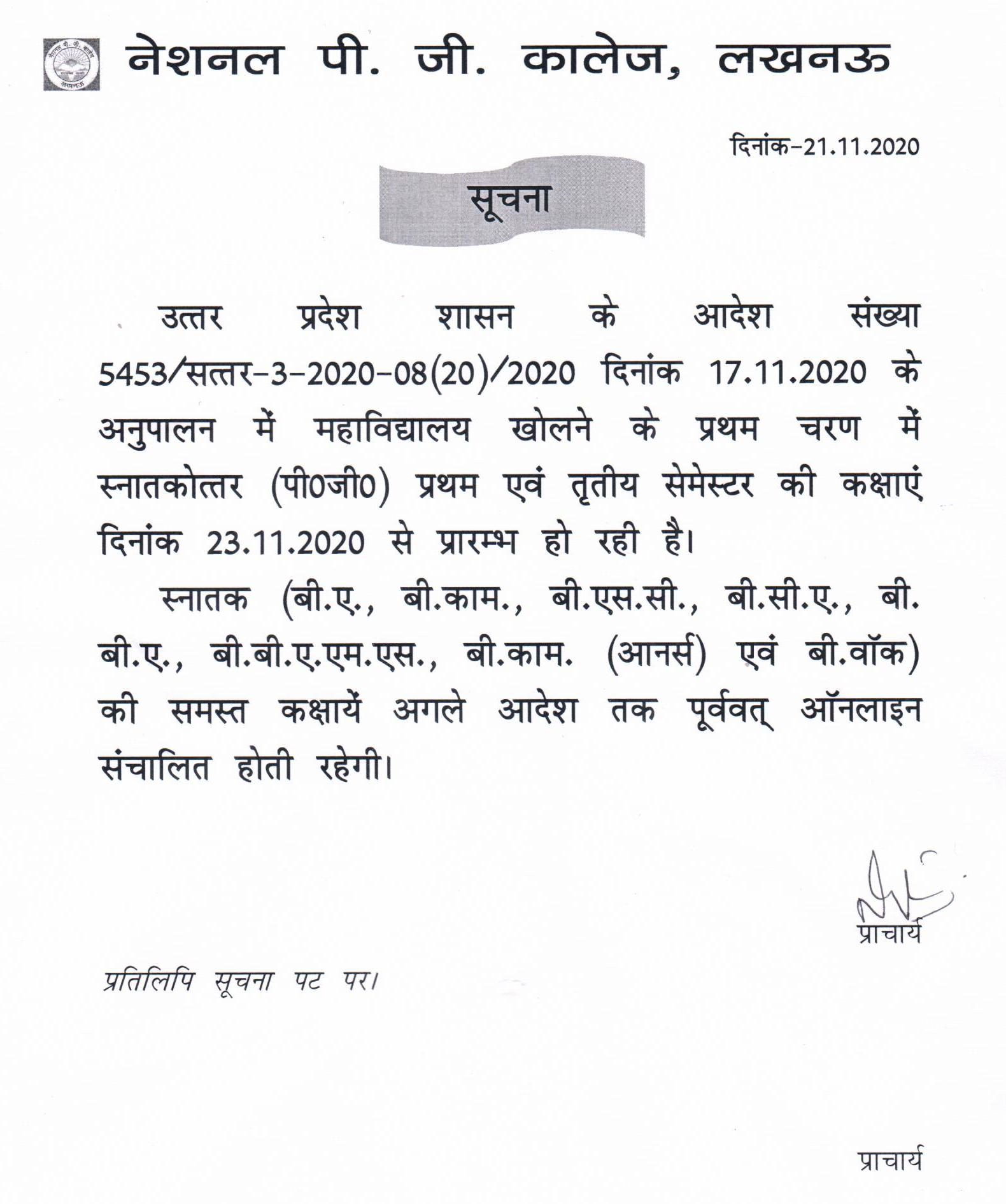 Notice for Resuming of Offline Classes