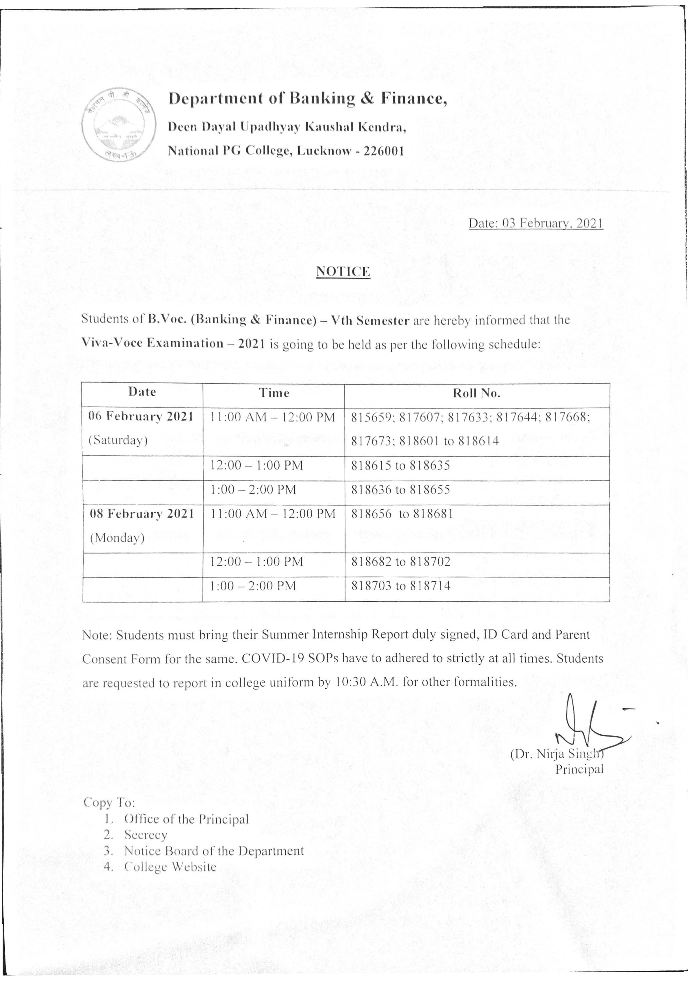 Semester-End Practical Exam (Dec-2020) - B.Voc. (B&F) - Vth Sem