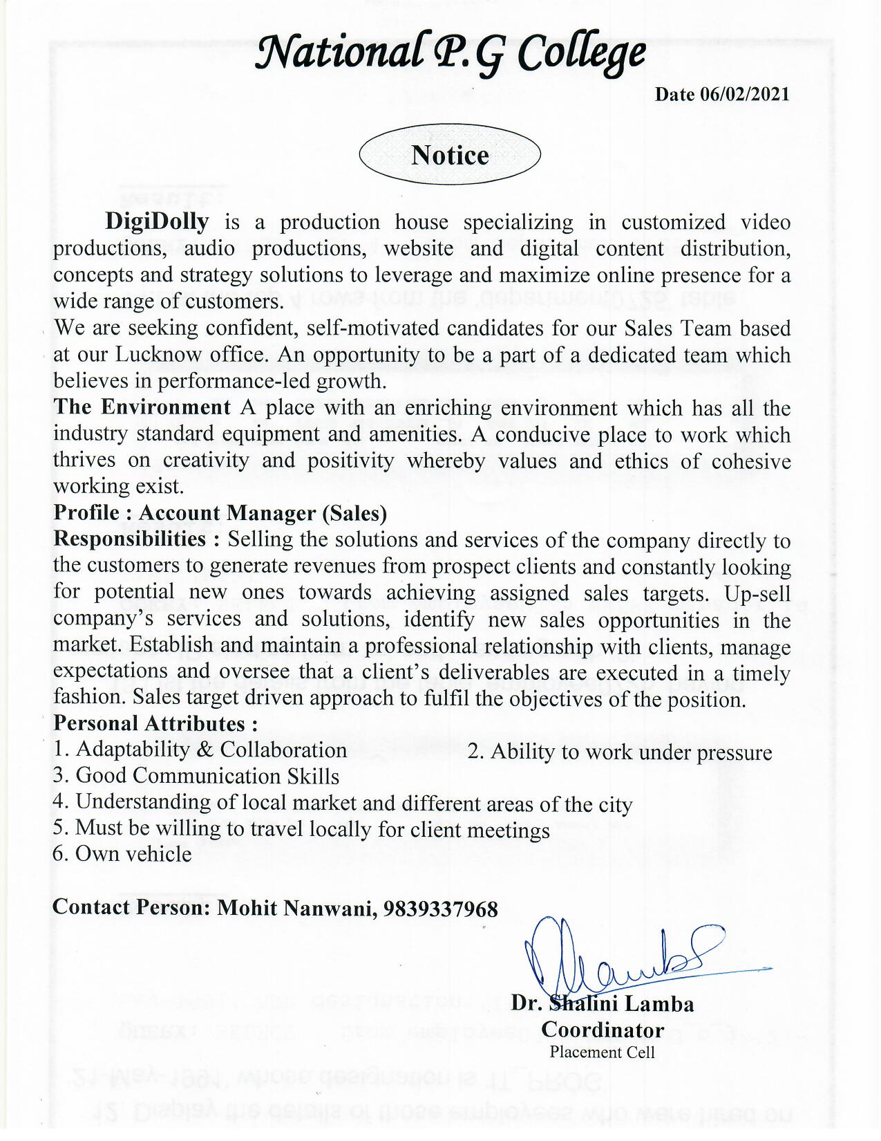 Placement Notice : DigiDolly