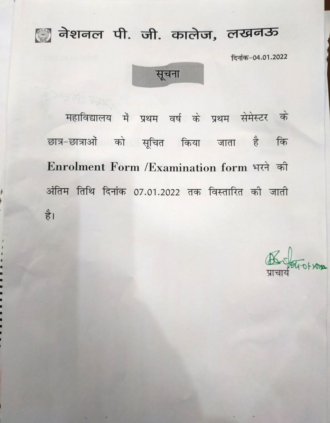 Examination Form Notice - Dec-2021 : Last Date extended for 1st Semester