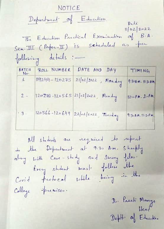 Semester-End Practical Exam (Dec-2021) - B.A. (Education) Sem-III