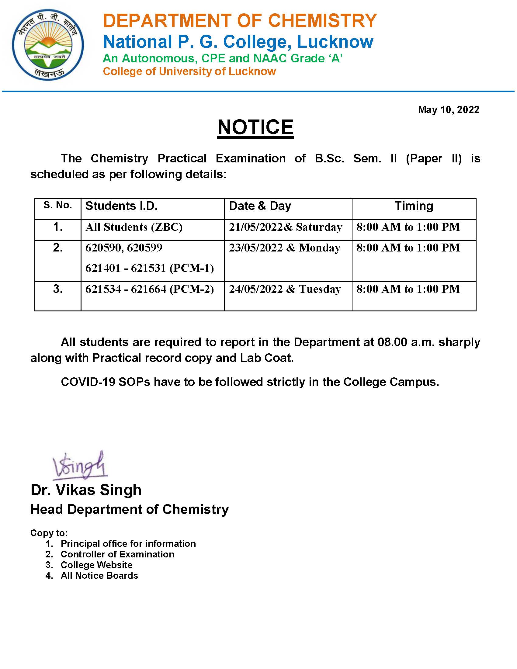 Semester-End Practical Exam (JUNE-2022) - B.Sc. (Chemistry) Sem-II