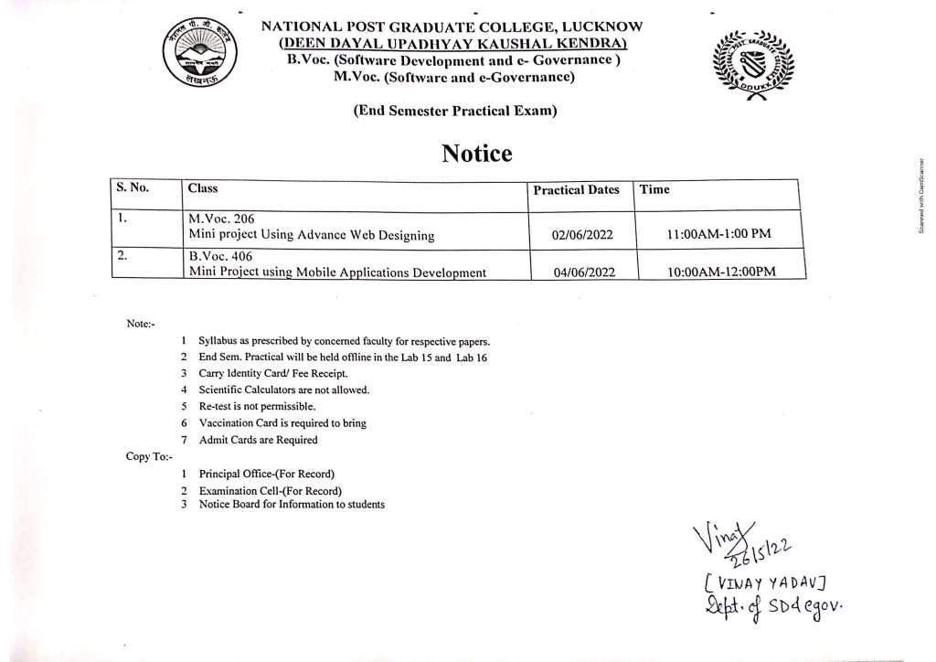 Semester-End Practical Exam (JUNE-2022) - B.Voc.-SD&EG Semester- II & IV