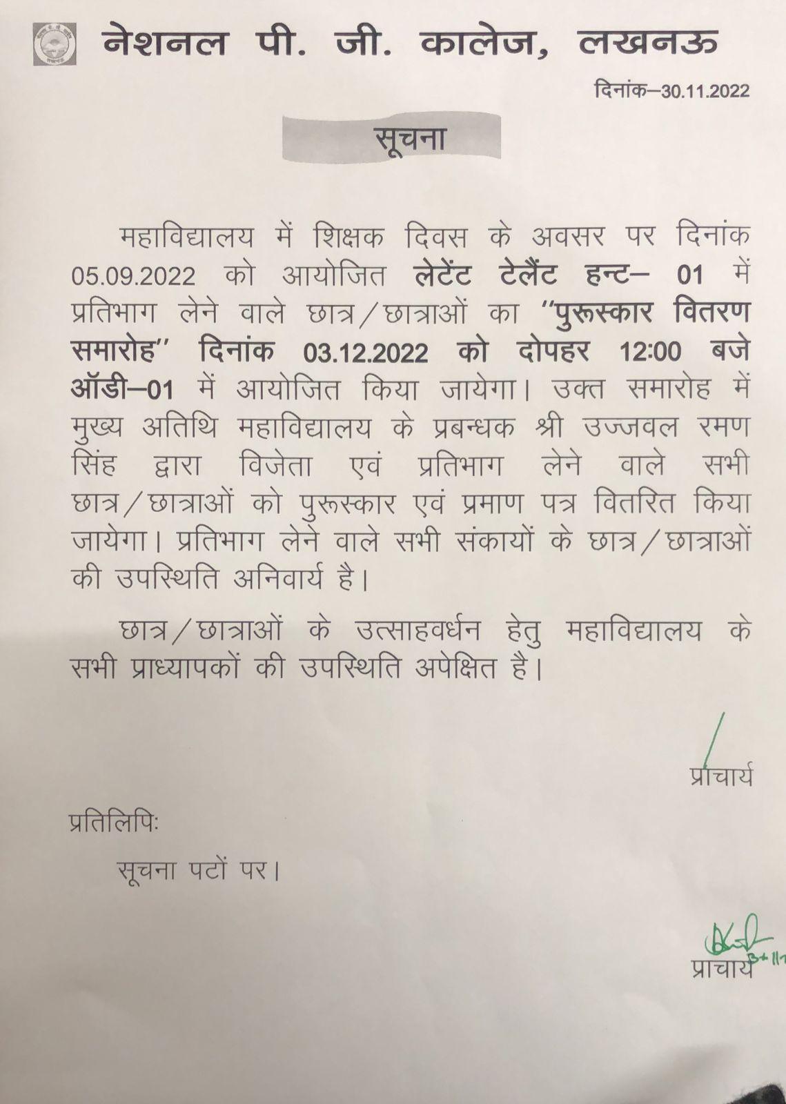 From Principal's Desk