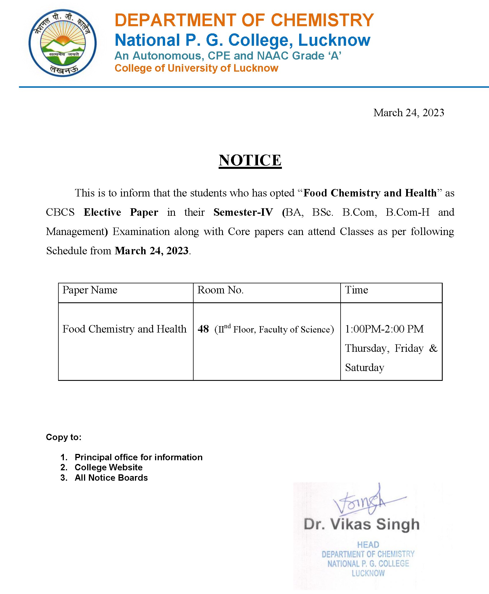 From Principal's Desk