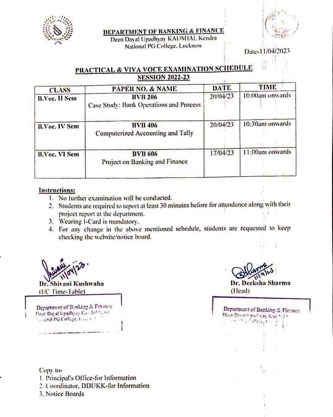 Semester-End Practical Examination: June-2023 - B.Voc-Banking & Finance