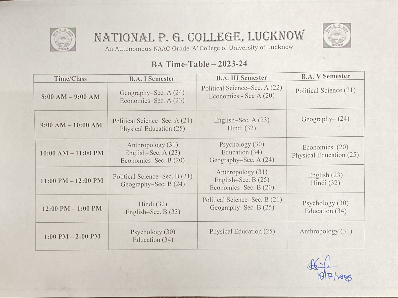TIme Table of B.A.