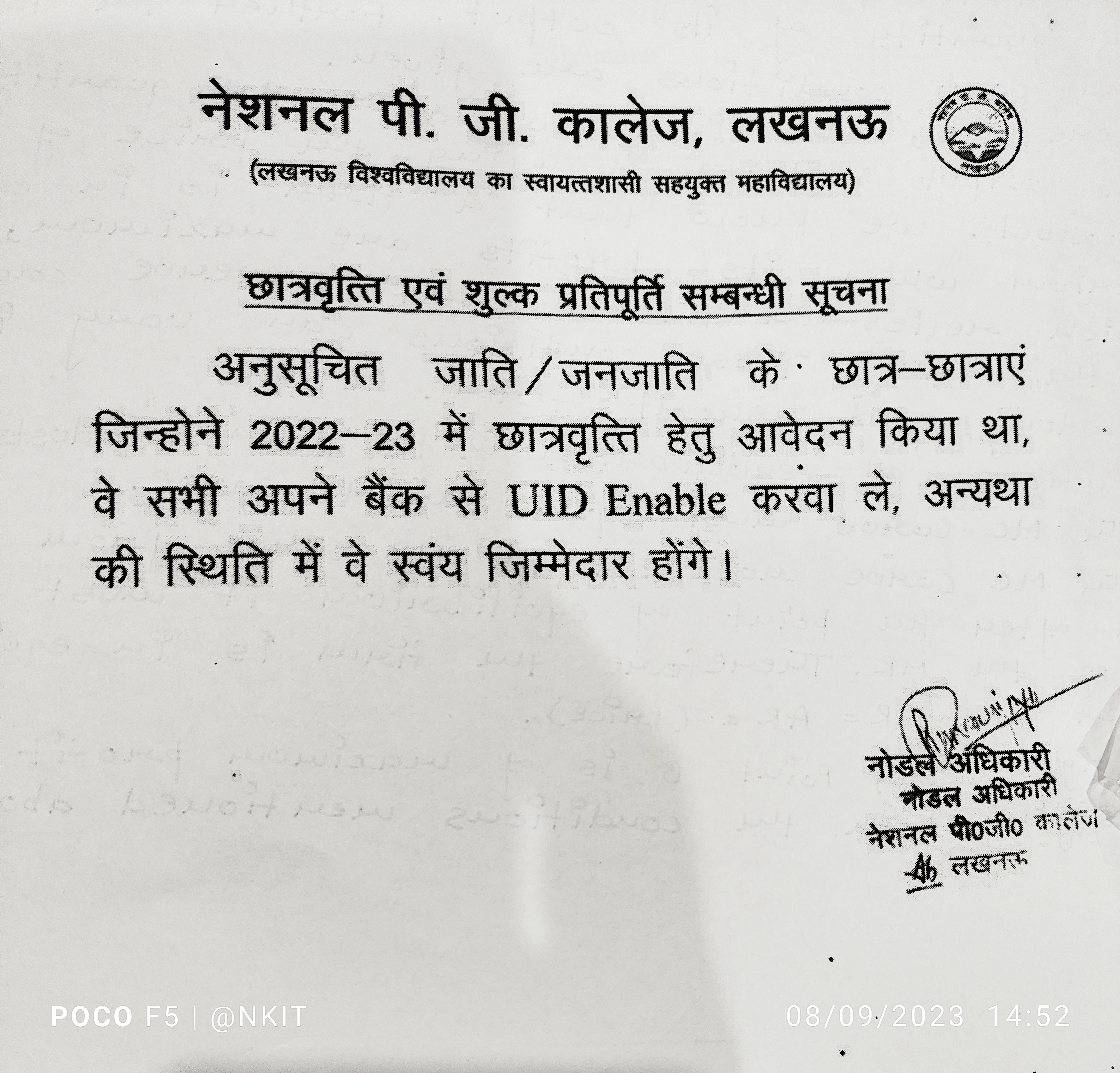Notice for scholarship