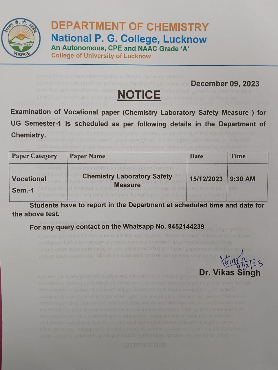 Semester-End Vocational Examination (DEC-2023) : Chemistry sem-1