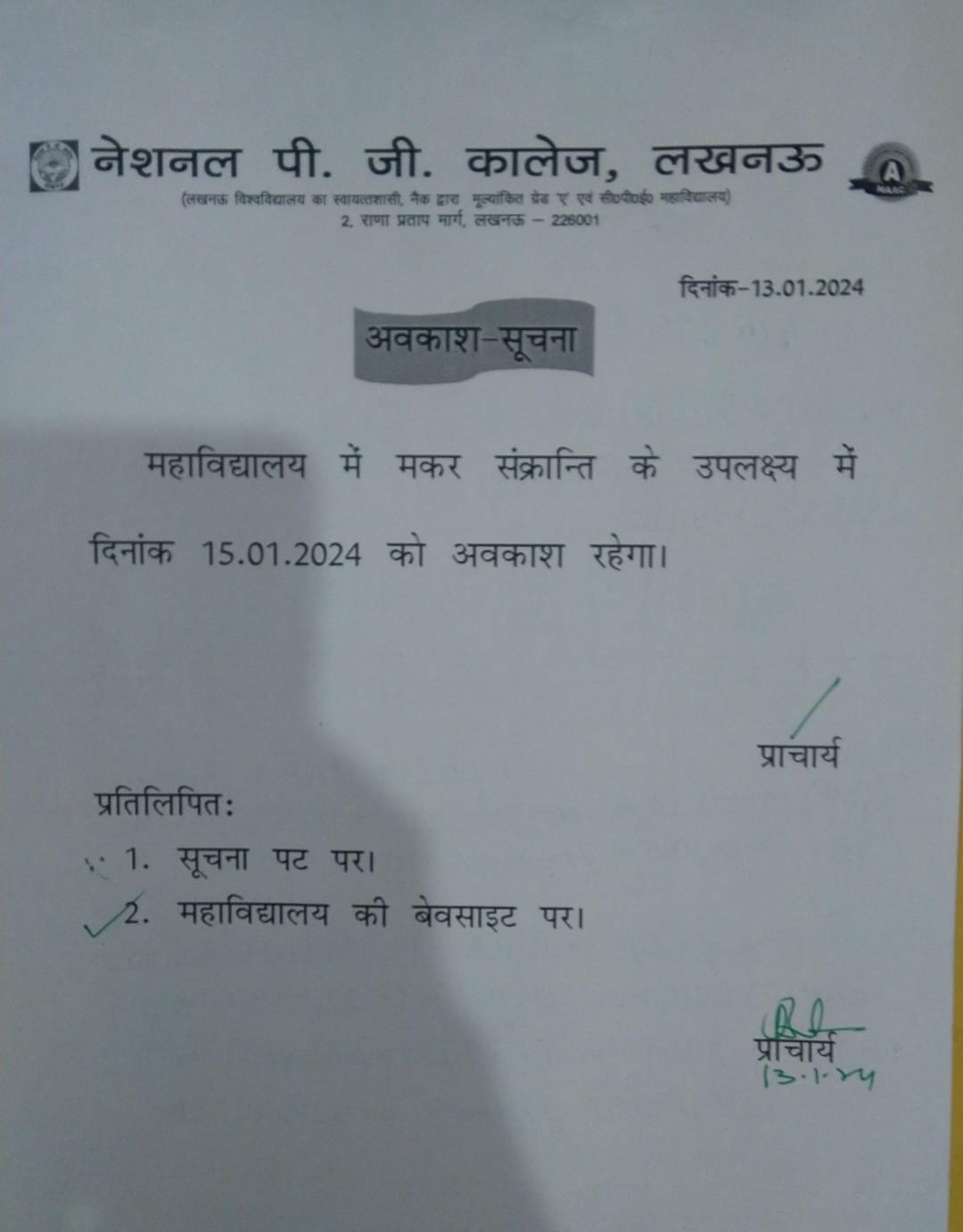 From Principal's Desk