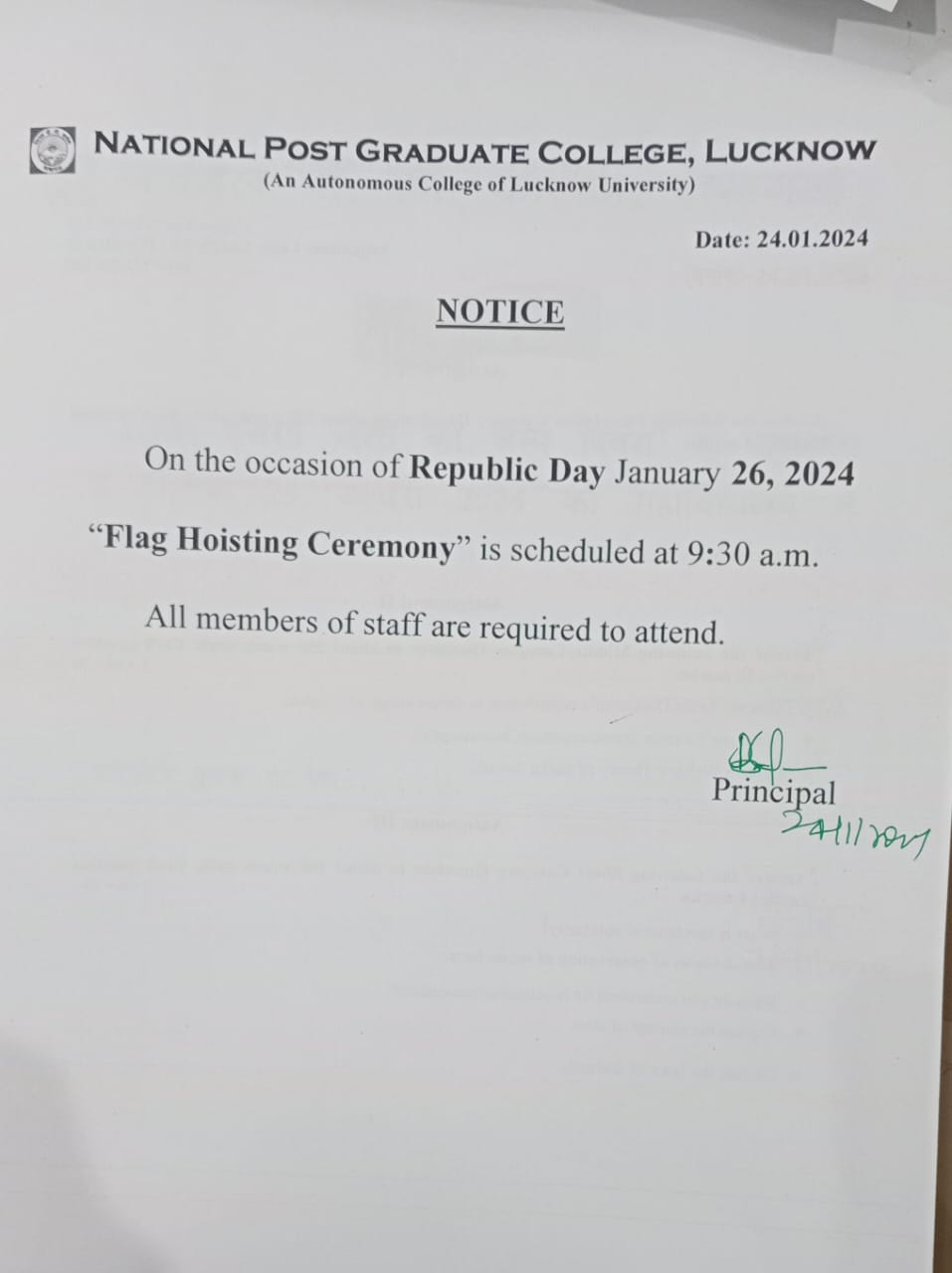 From Principal's Desk