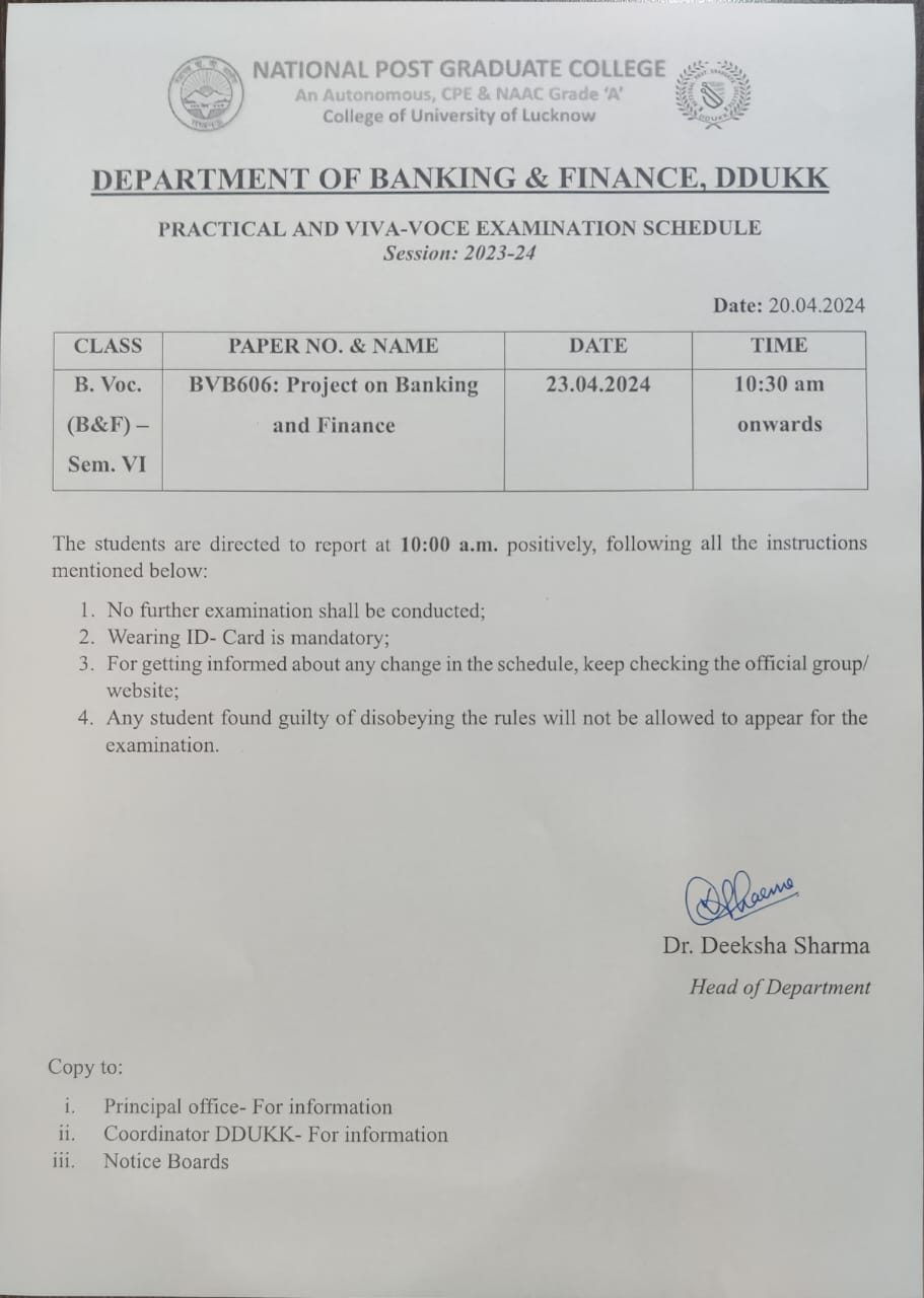 Semester-End Practical Examination (June-2024) - B.Voc B&F
