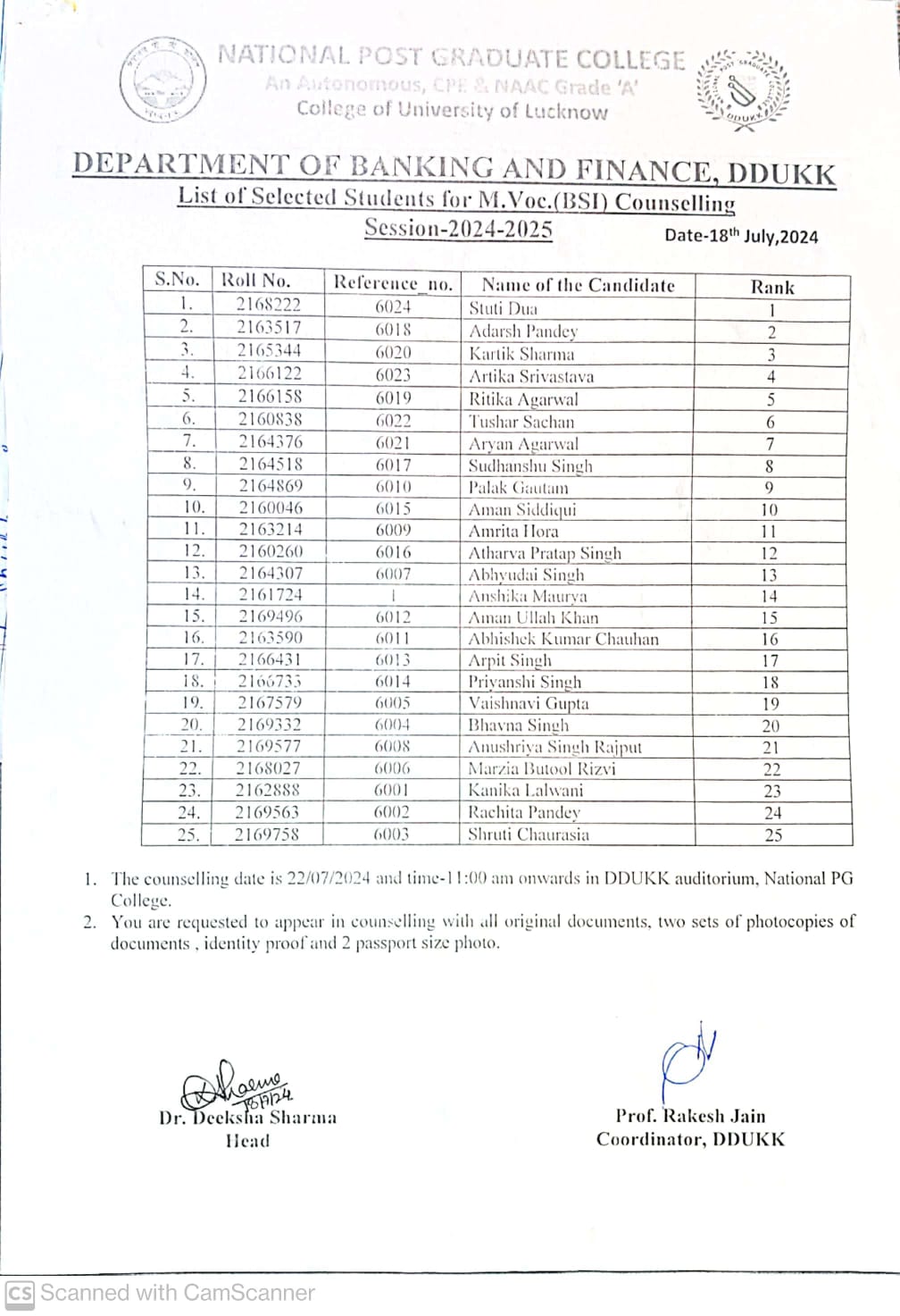 Admission: M.Voc. (Banking, Stock & Insurance)