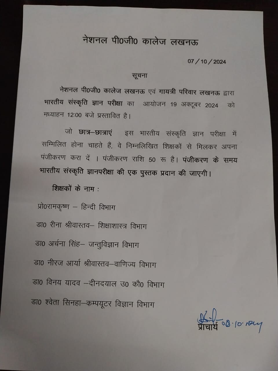 From Principal's Desk