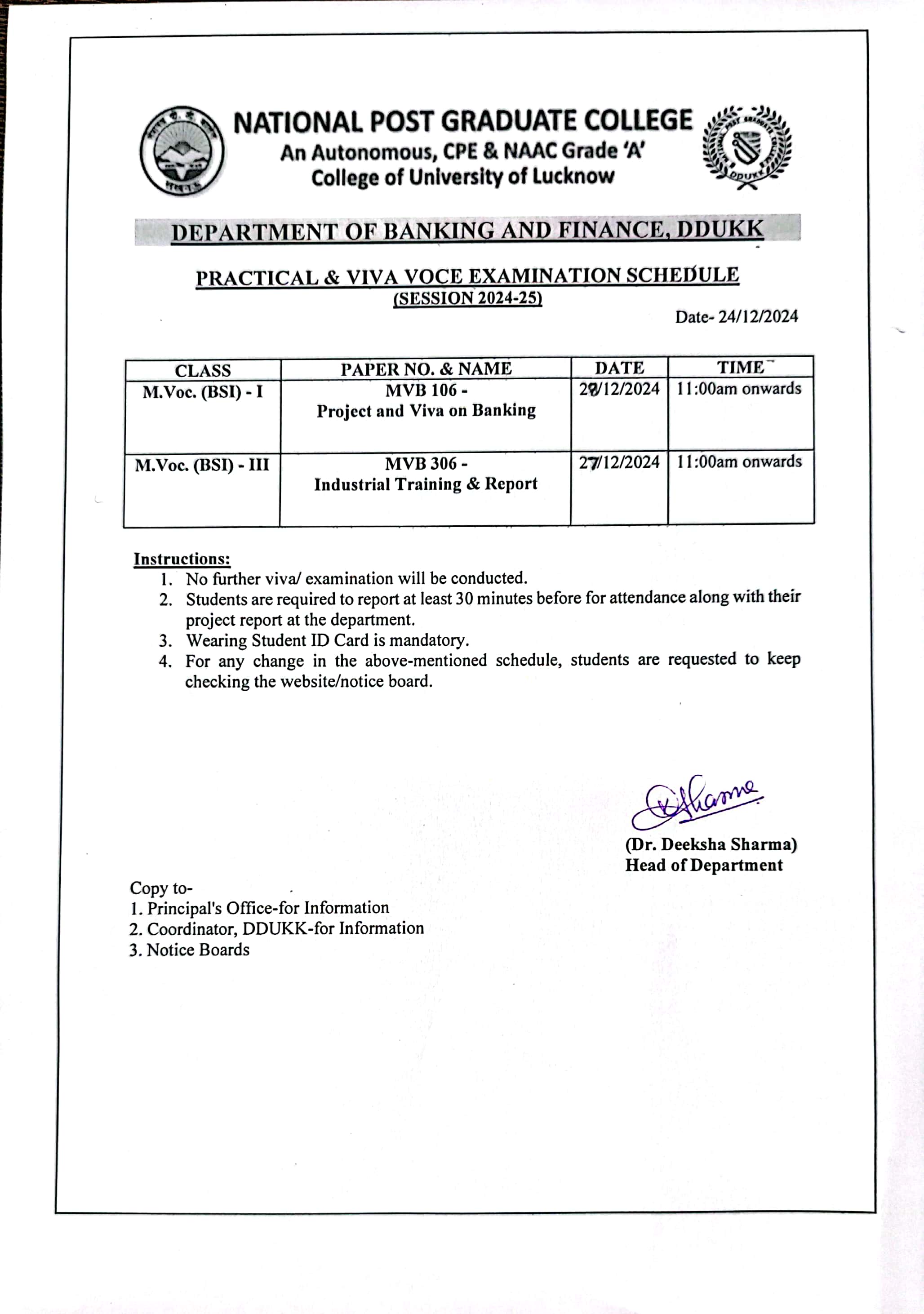 Semester-End Practical Examination (DEC-2024) - M.Voc. (BSI)