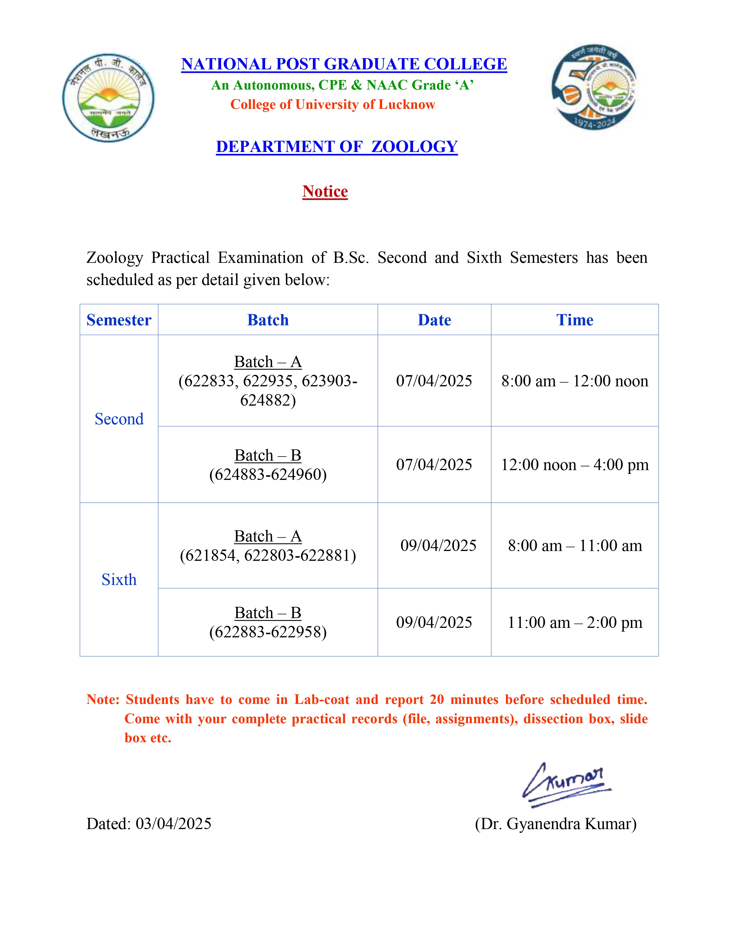 Semester-End Practical Examination (June-2025) - Zoology