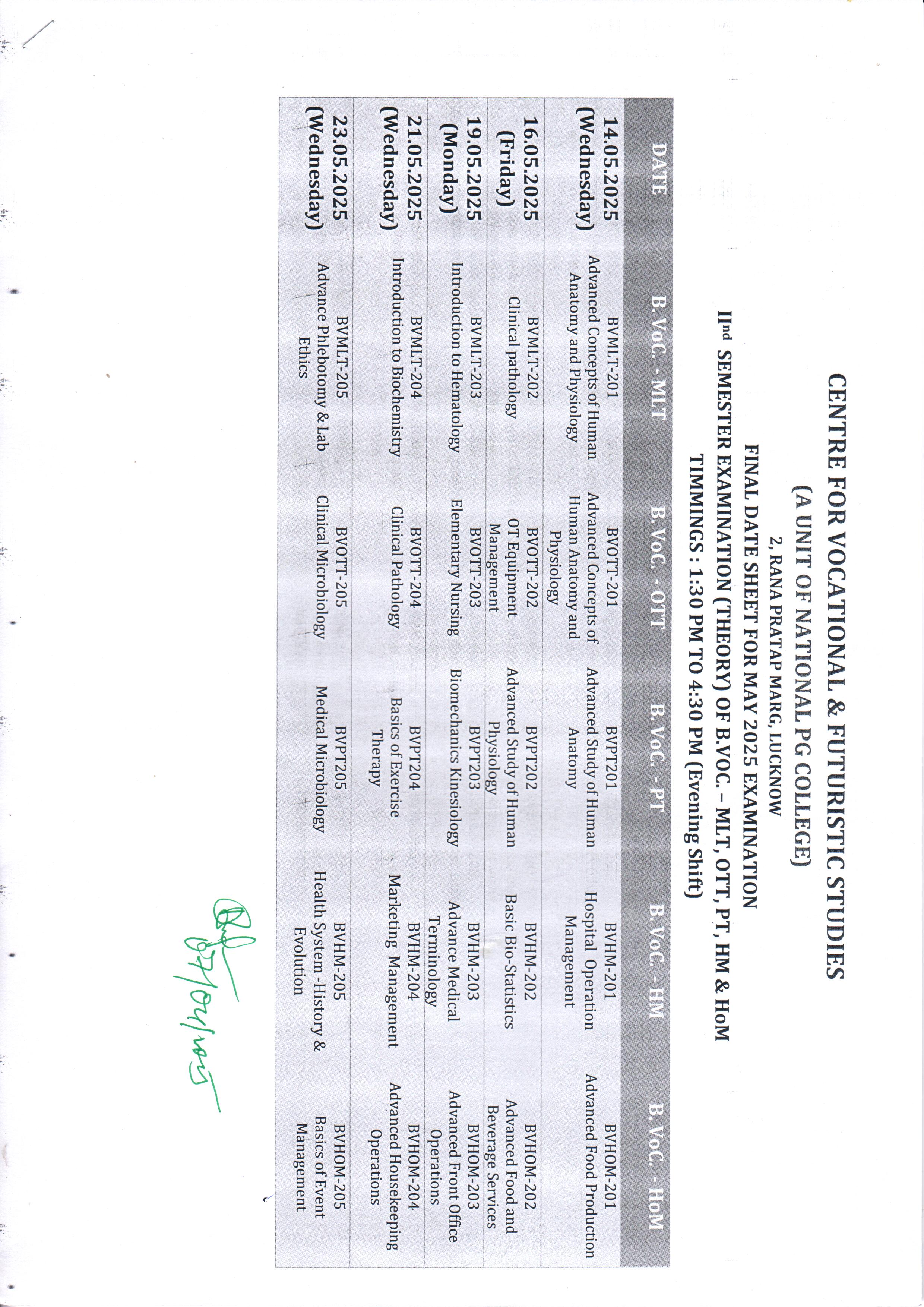 June-2025 Examination schedule for CVFS courses