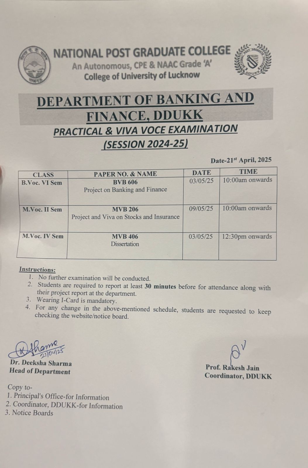 Practical / Viva - Voce Examination Notice DDUKK (Banking & Finance)