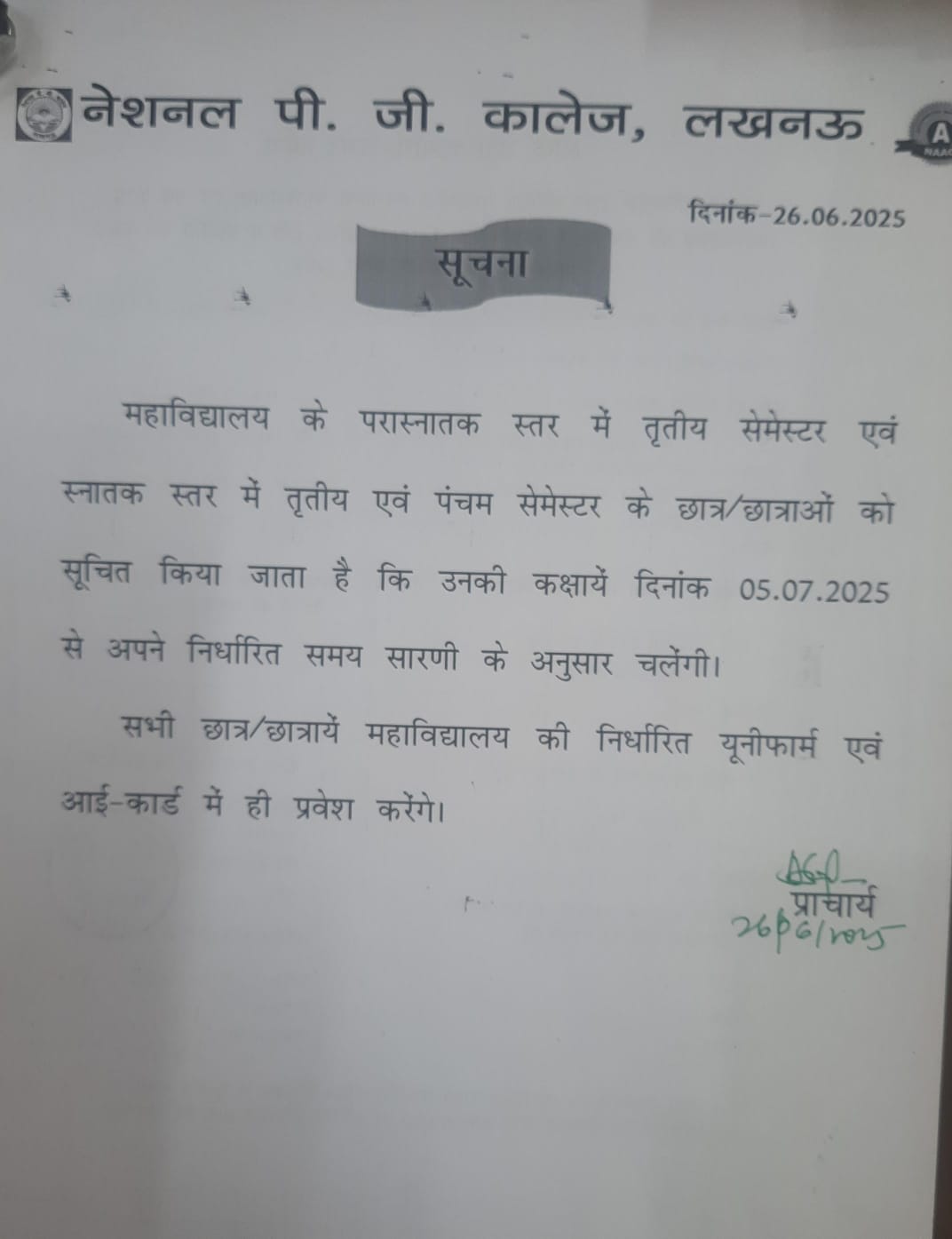 Commencement of Classes of Semester 3 &5 from 05th July 2025