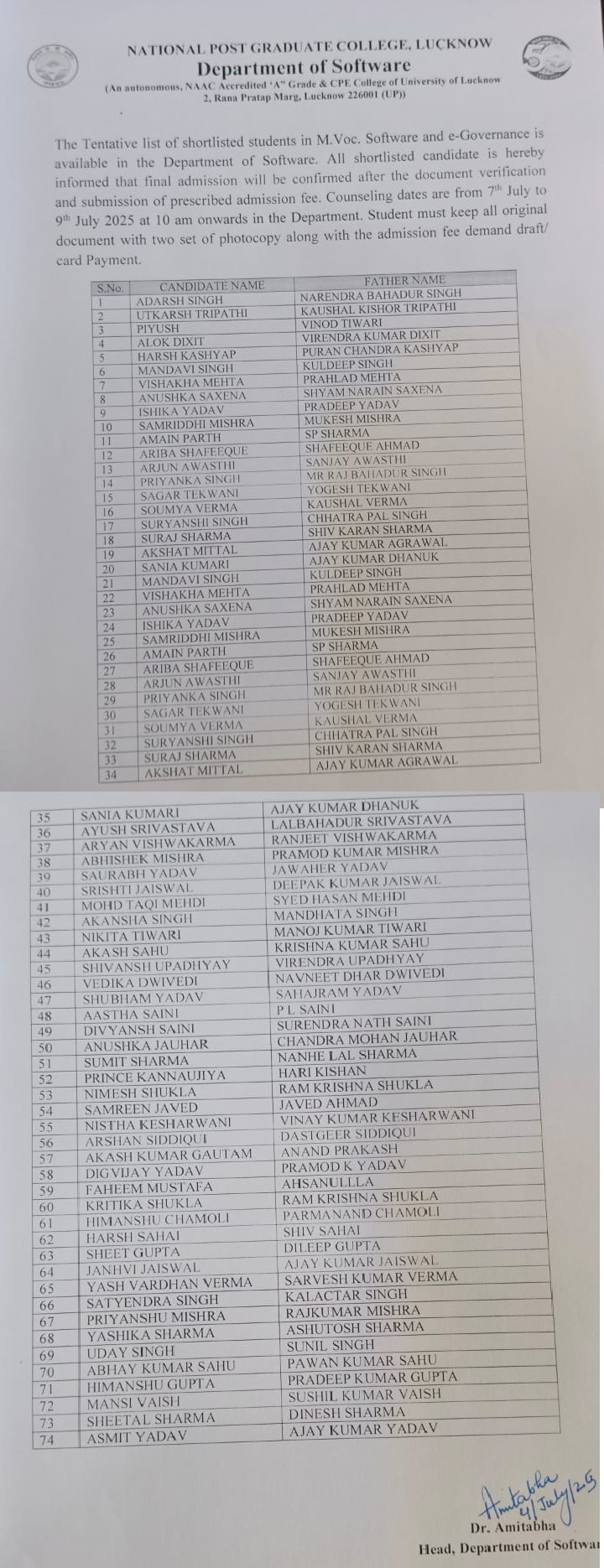 Admission: Merit list of M.Voc. (Software & E-Governance)