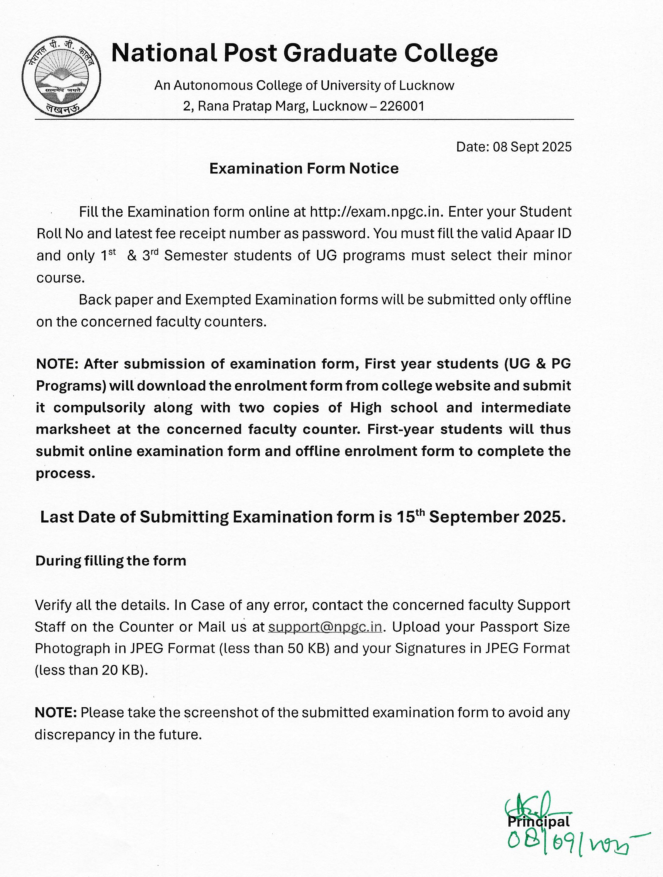 Examination Form Link: http://exam.npgc.in