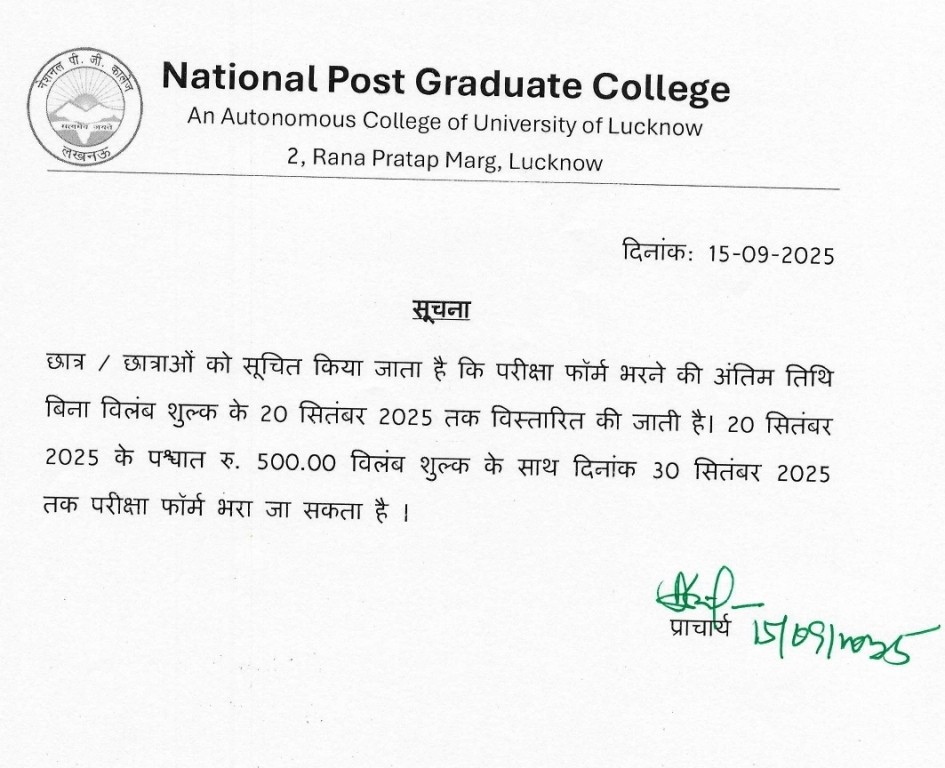 Examination Form Notice DEC-2025: Last Date Extended