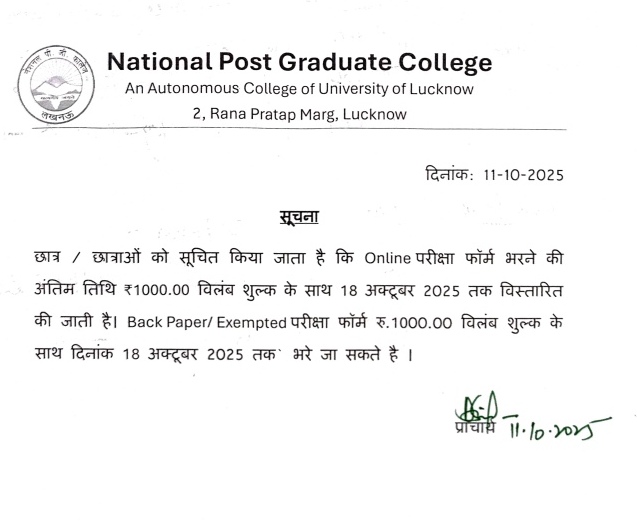 Examination Form Notice Dec-2025: Last Date Extended