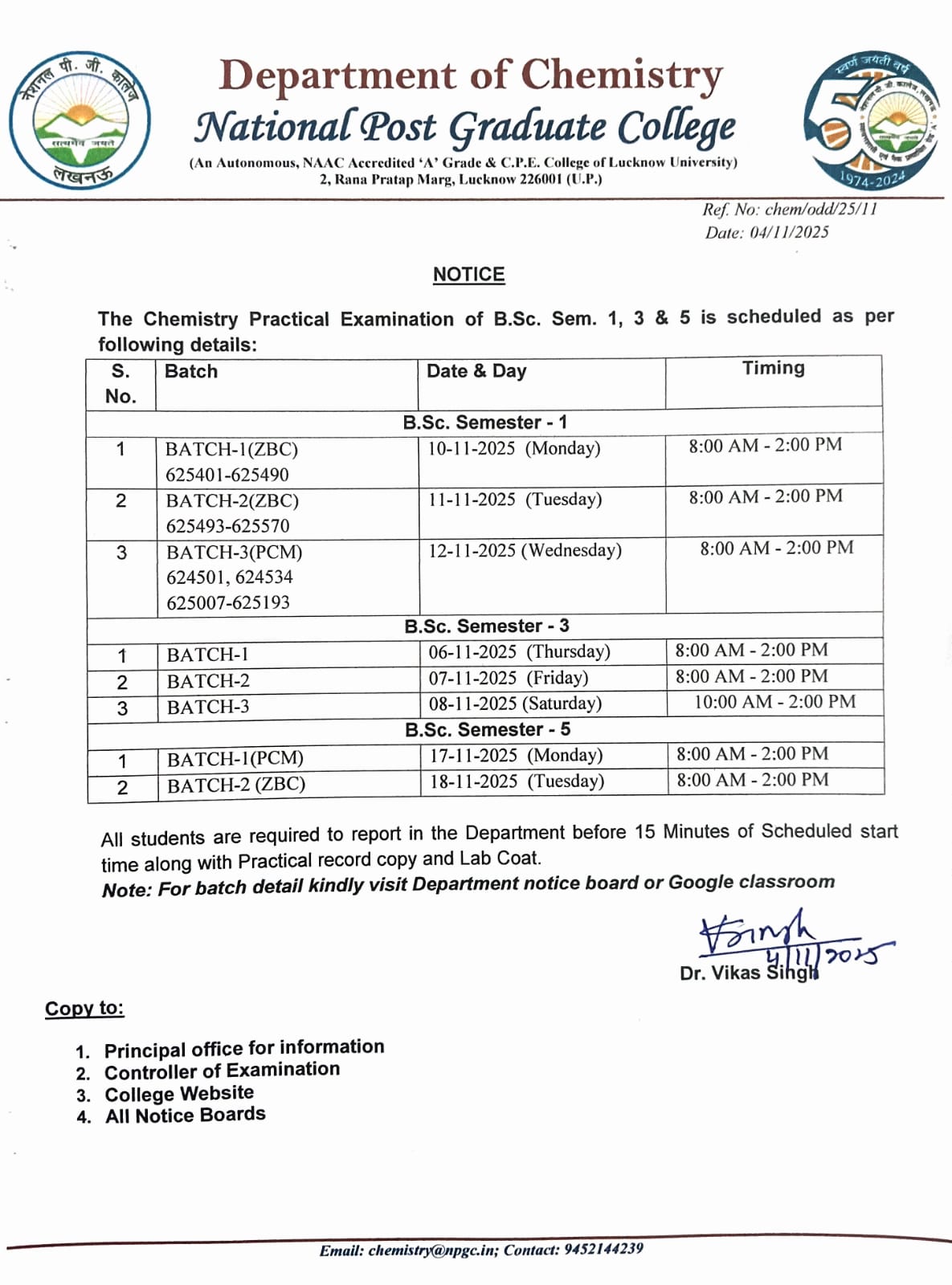 Semester End Practical Examination (Dec-2025) - Chemistry