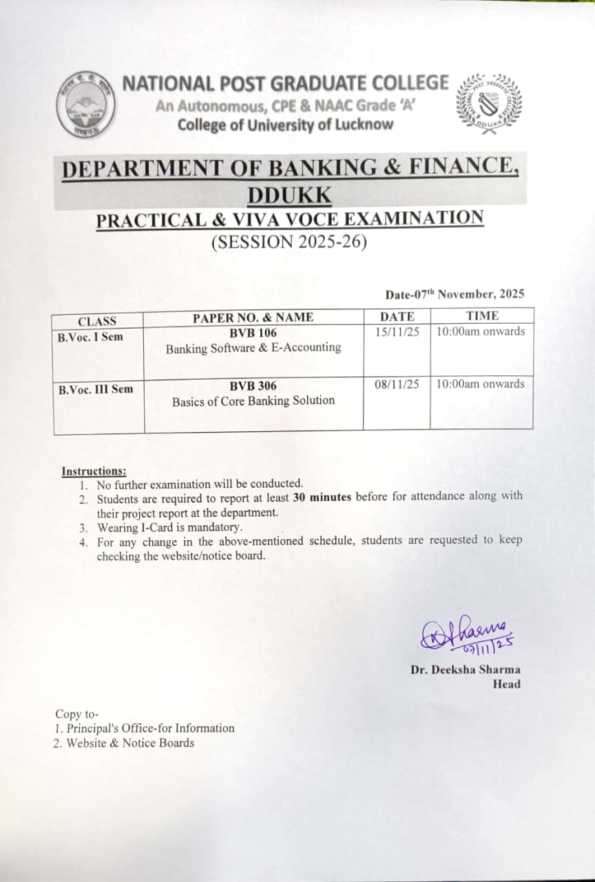 Semester End Practical Examination (Dec-2025) - BVoc-B&F Sem - I & III