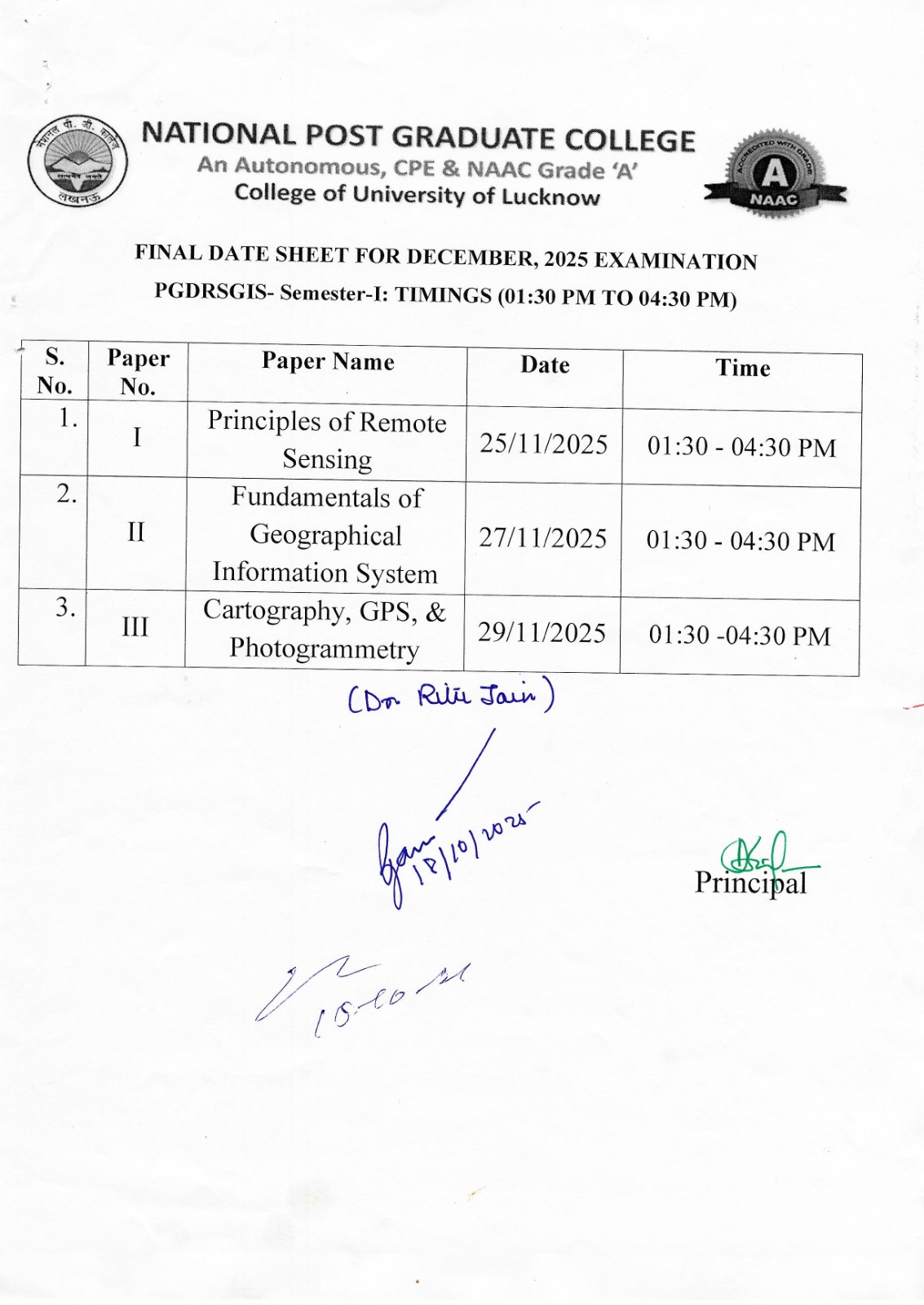 Examination Datesheet (DEC-2025) : PGDRSGIS