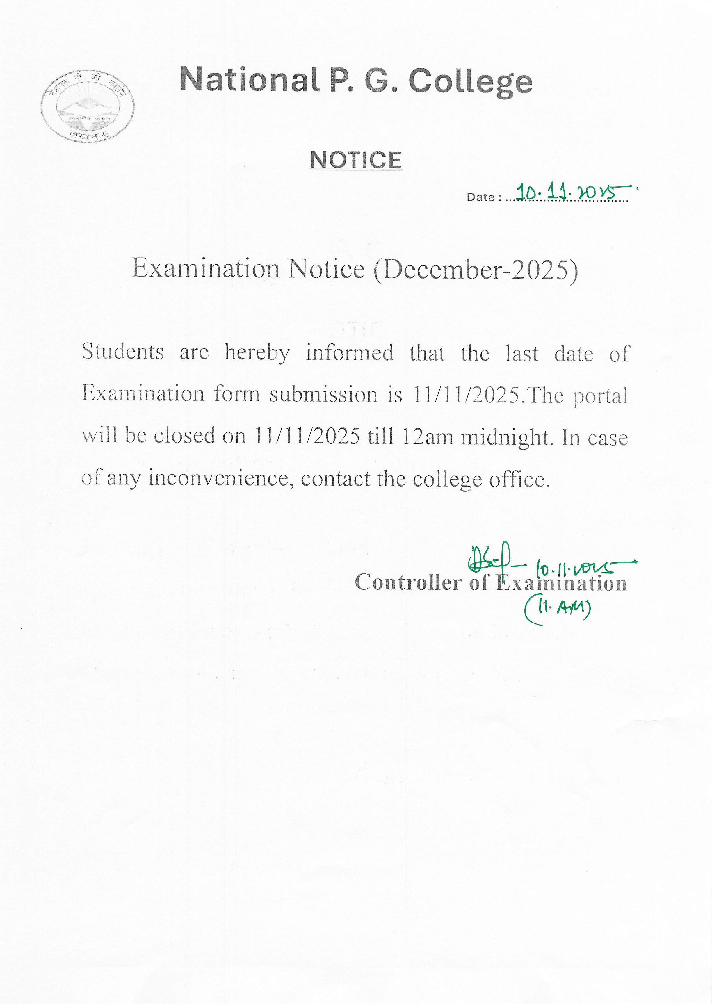 Important Notice Regarding Last Date of Examination Form (December, 2025)