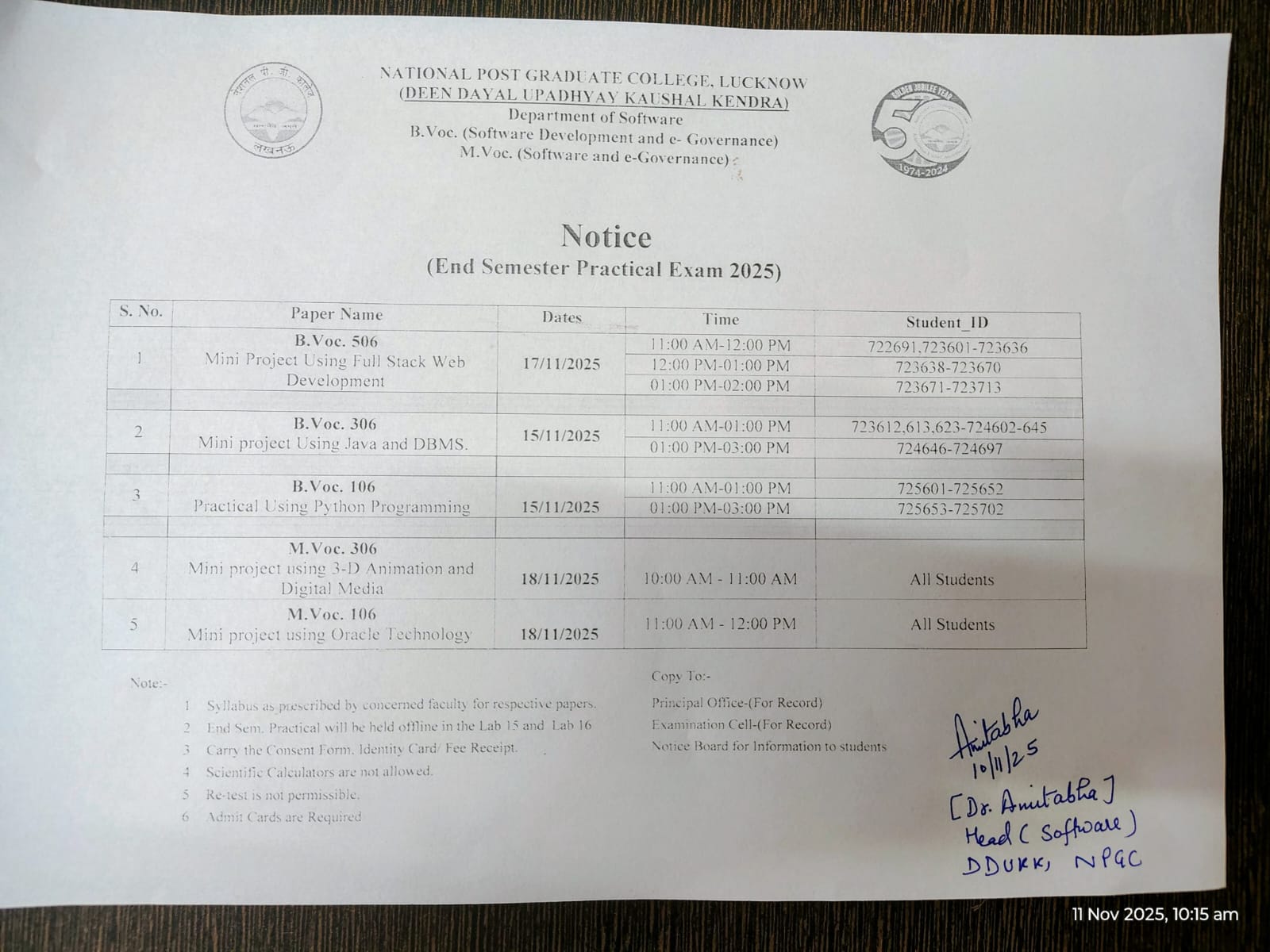 Semester End Practical Examination (Dec-2025) - BVoc-SD&EG