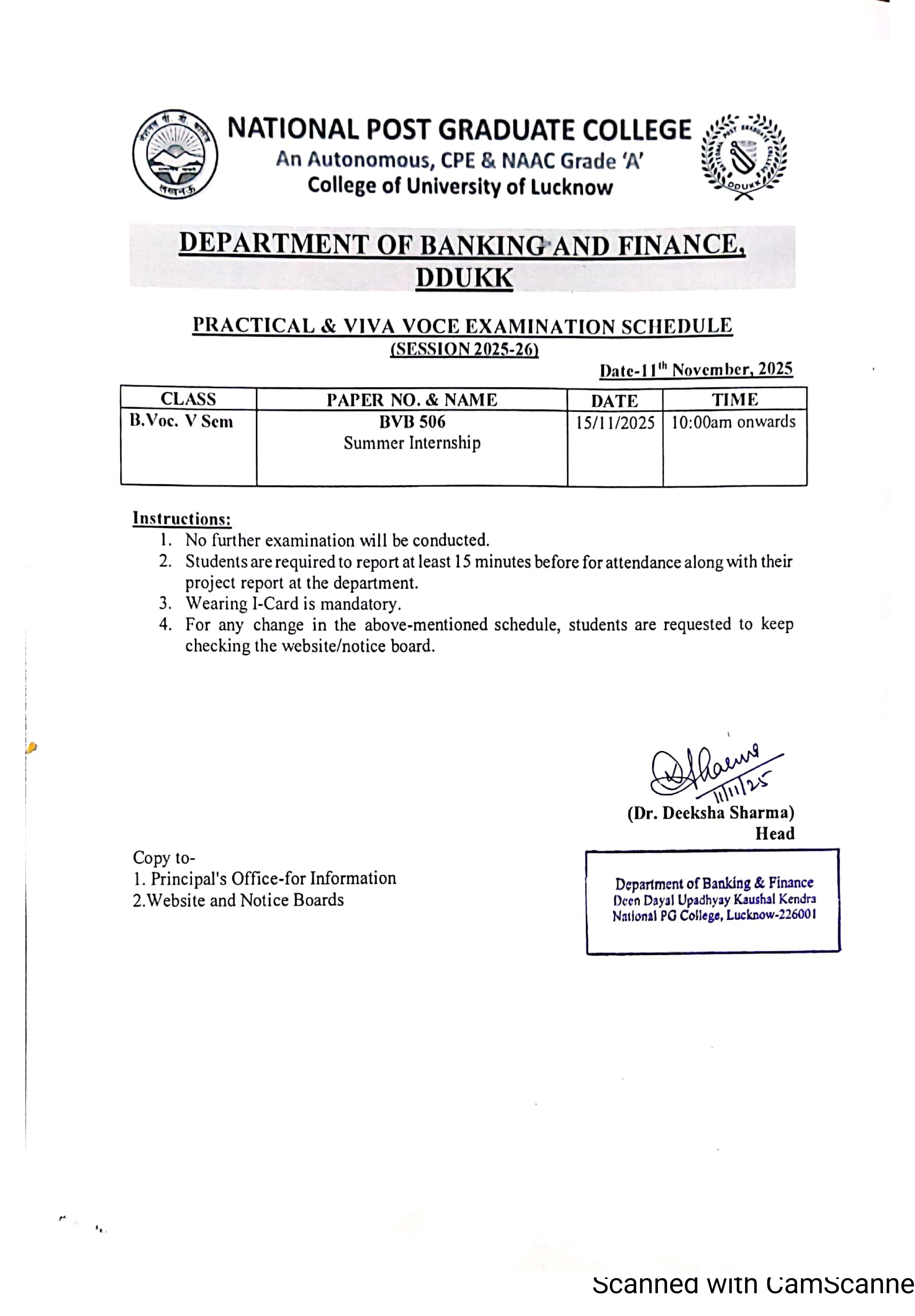 Practical & Viva-Voce Schedule (BVoc-Semester 5) December-2025