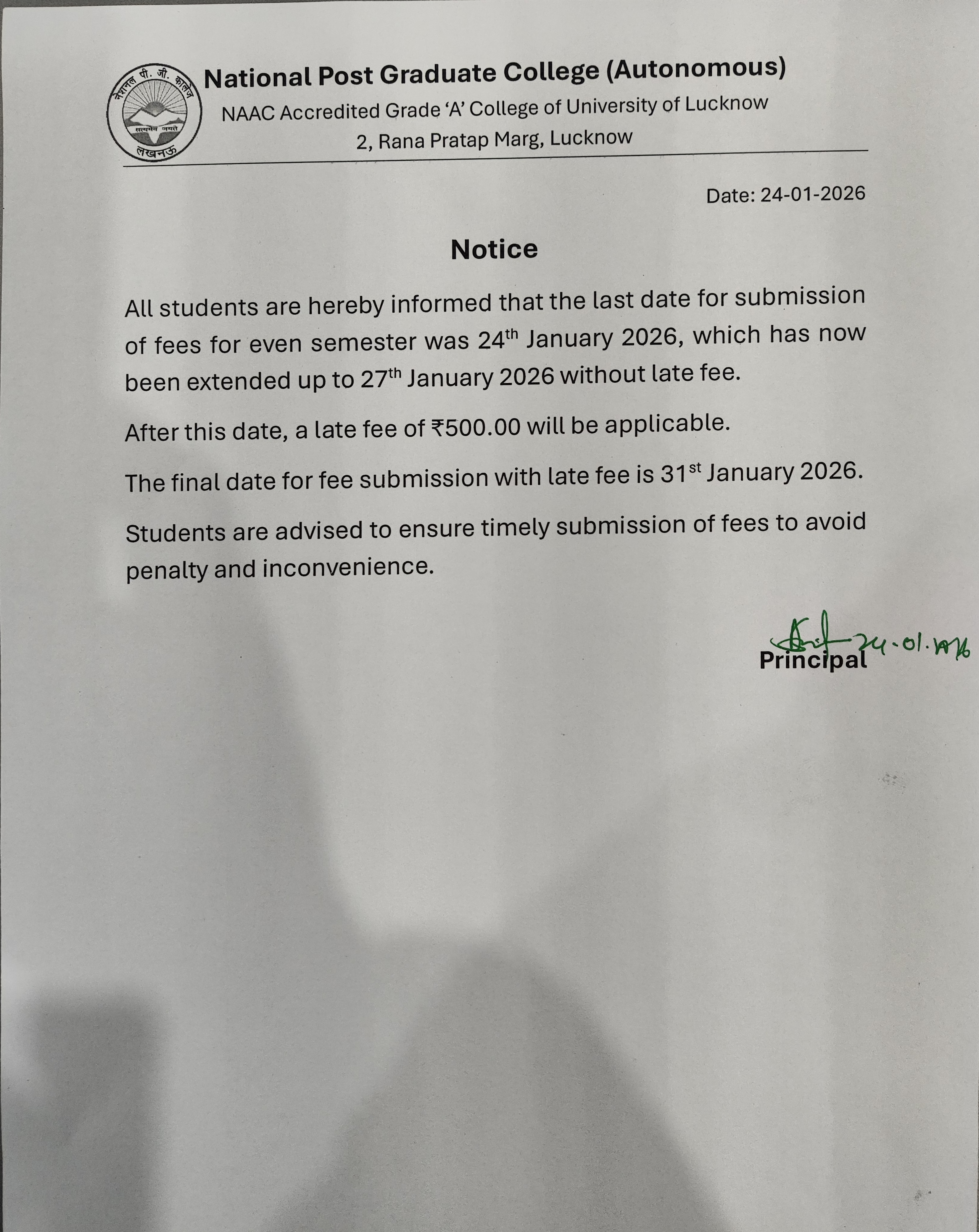 Semester Fees Notice