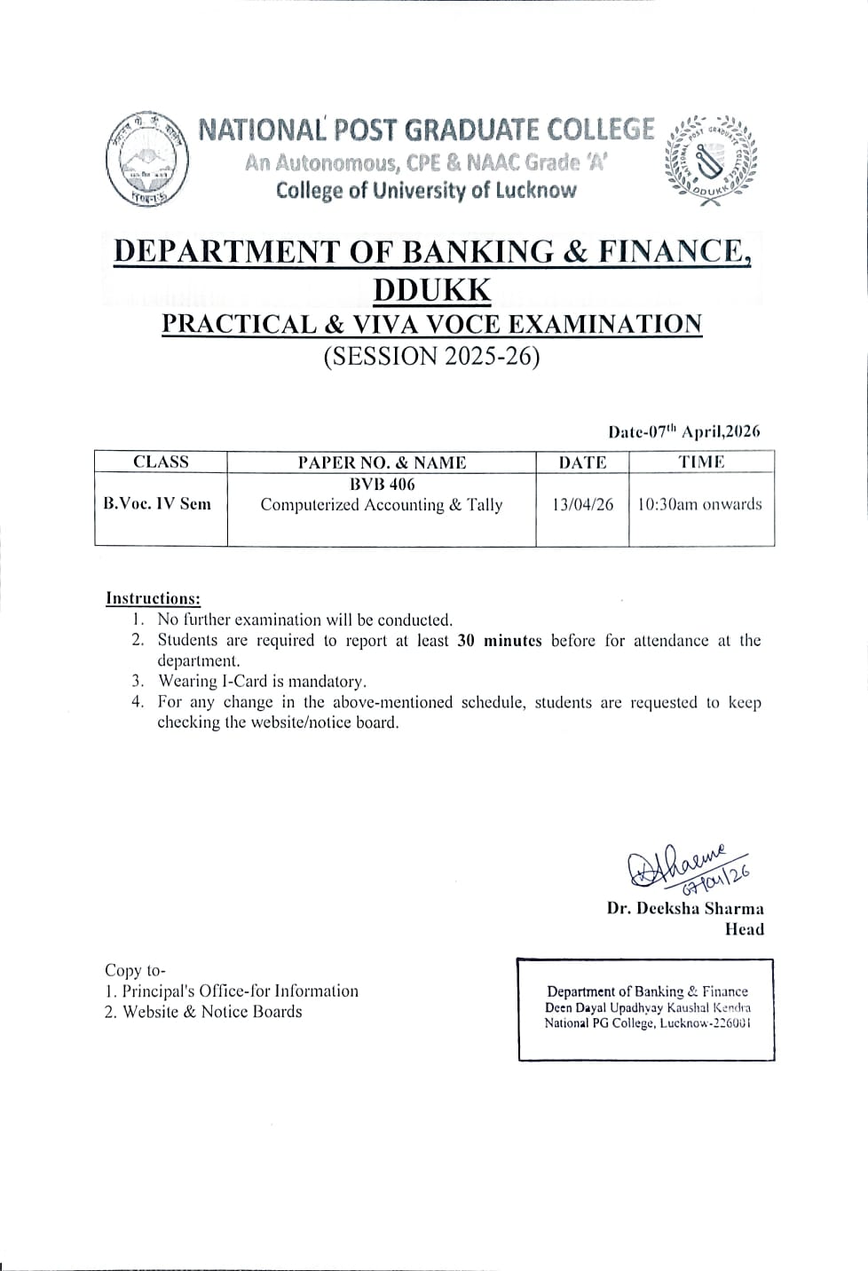 Semester-End Practical Examination JUNE-2026: B.Voc.-Sem IV