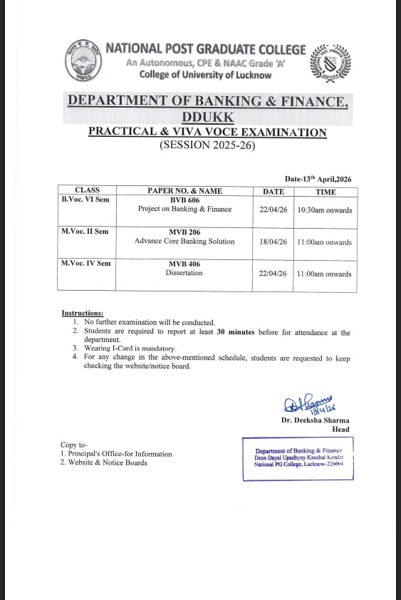 Semester-End Practical Examination JUNE-2026: DDUKK - Banking & Finance