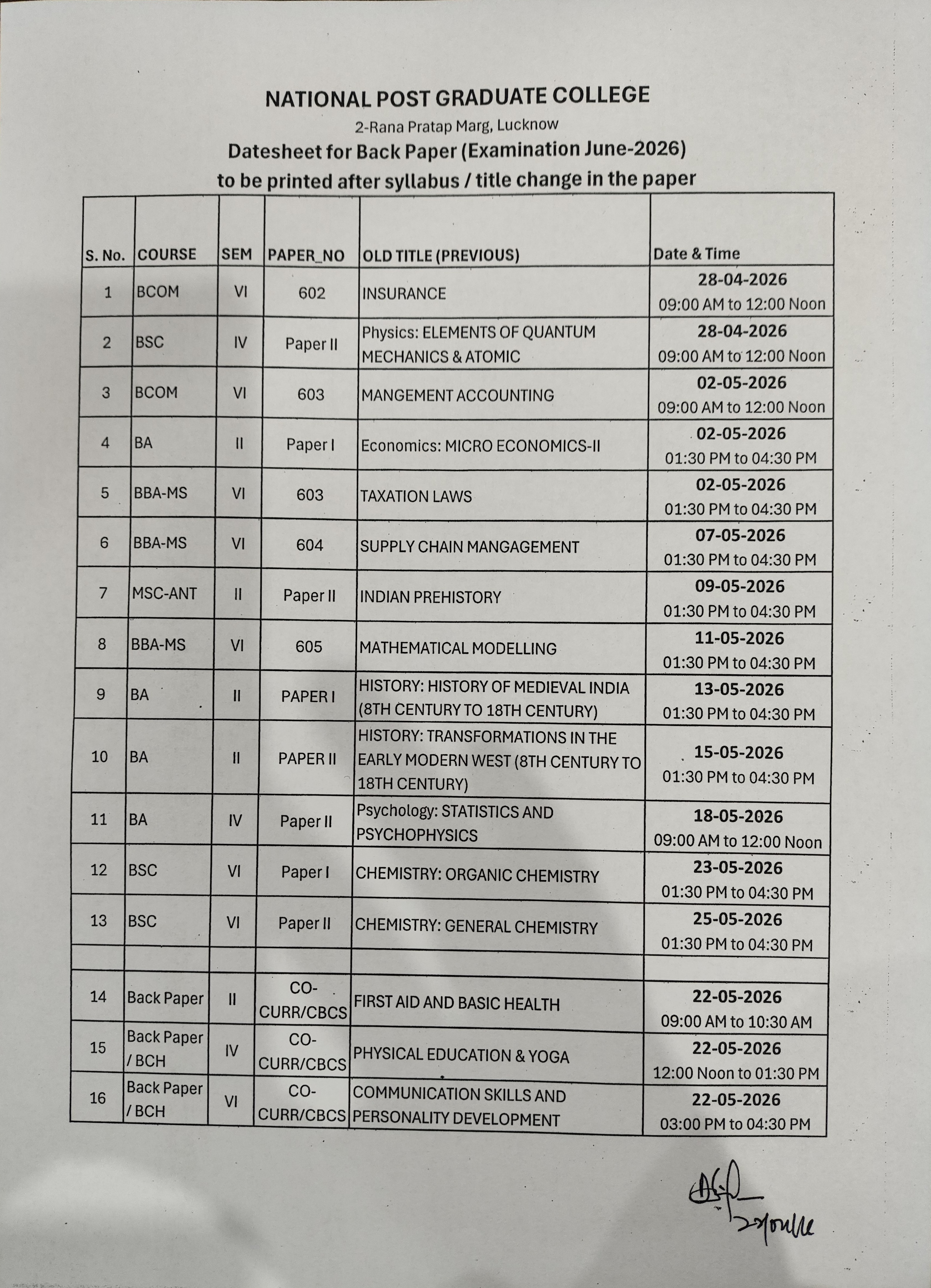 Semester-End Examination JUNE-2026: BackPaper Old Paper