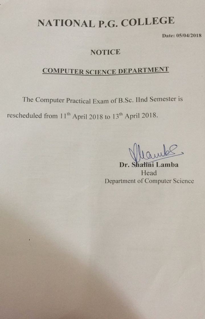 Notice Regarding Computer Practical of B.Sc. Semester II