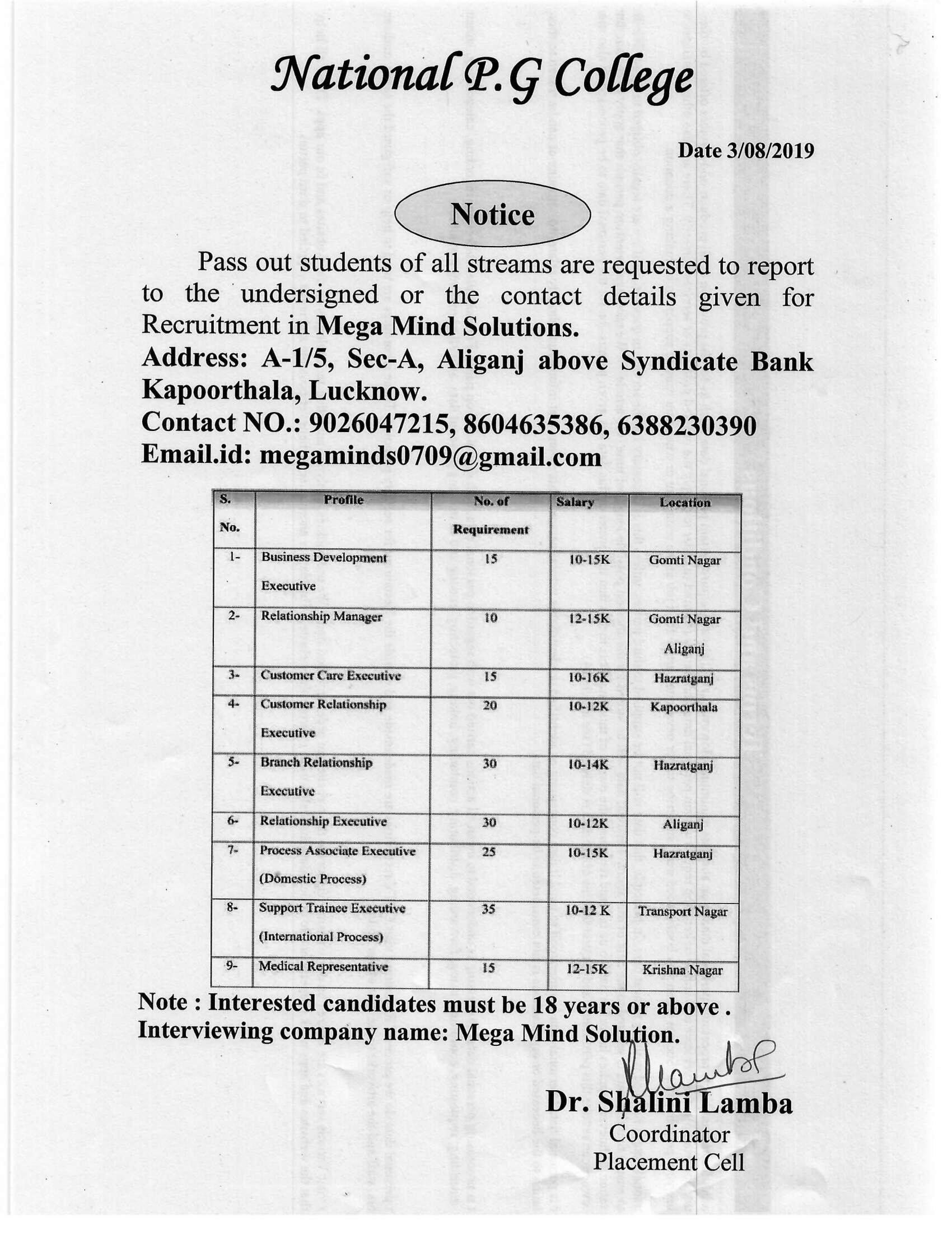 Placement Notice : Mega Mind Solution