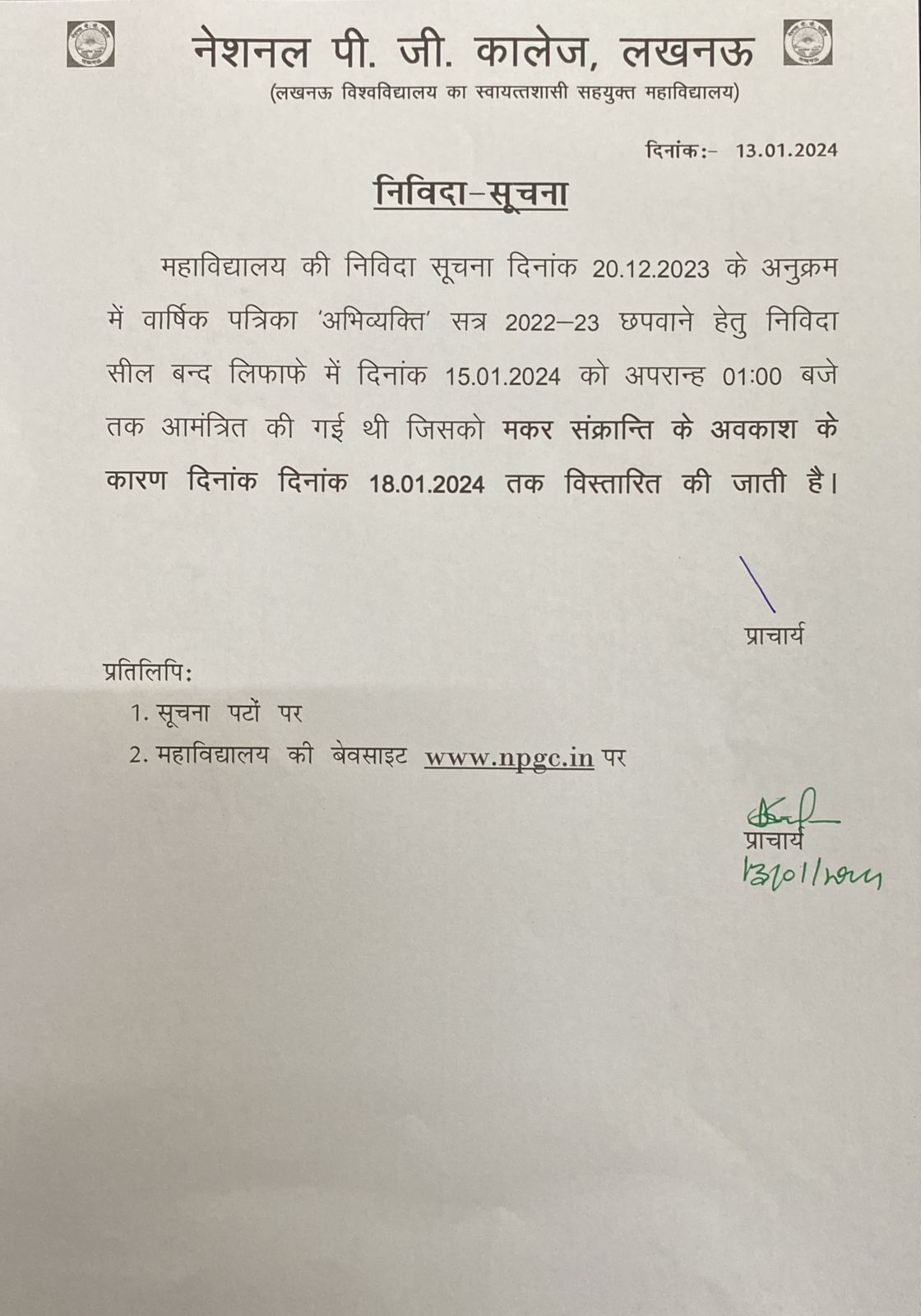 Date Extension: Printing of Abhivyakti Magazine 2022-23