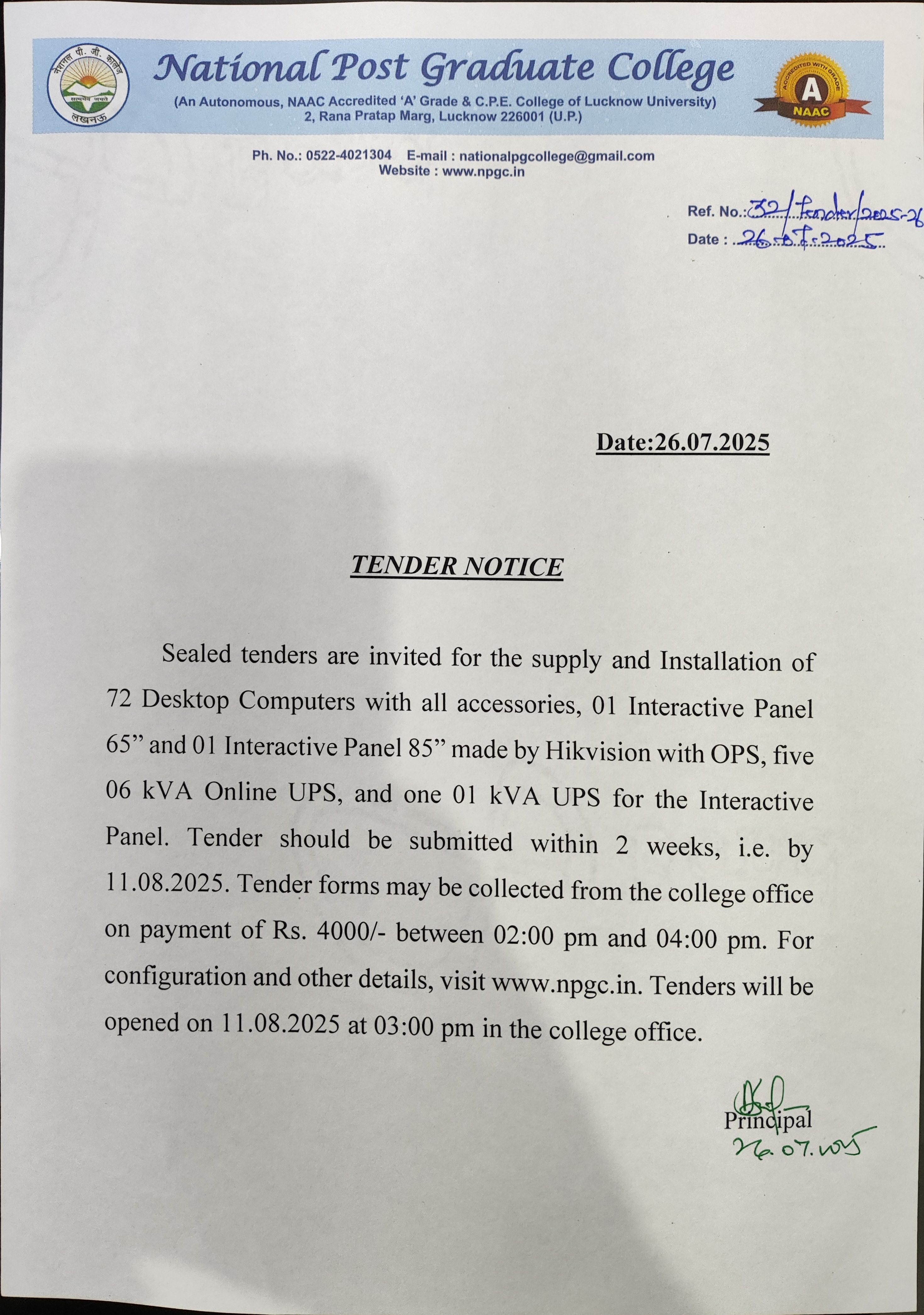 Supply of Desktop Computer, interactive panel & UPS